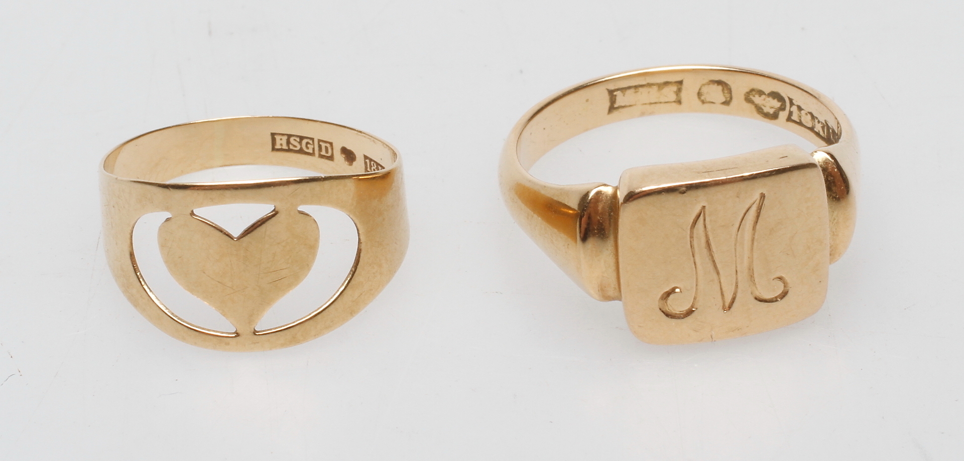 157633. RINGE, 2 stk, 18k guld, vægt ca. 8,5 gr.
