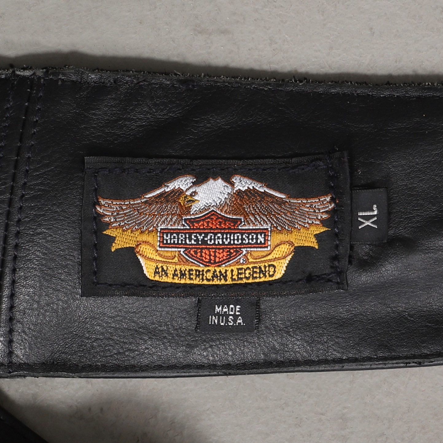 1580171. MC-CHAPS, læder, Harley Davidson, str. XL.