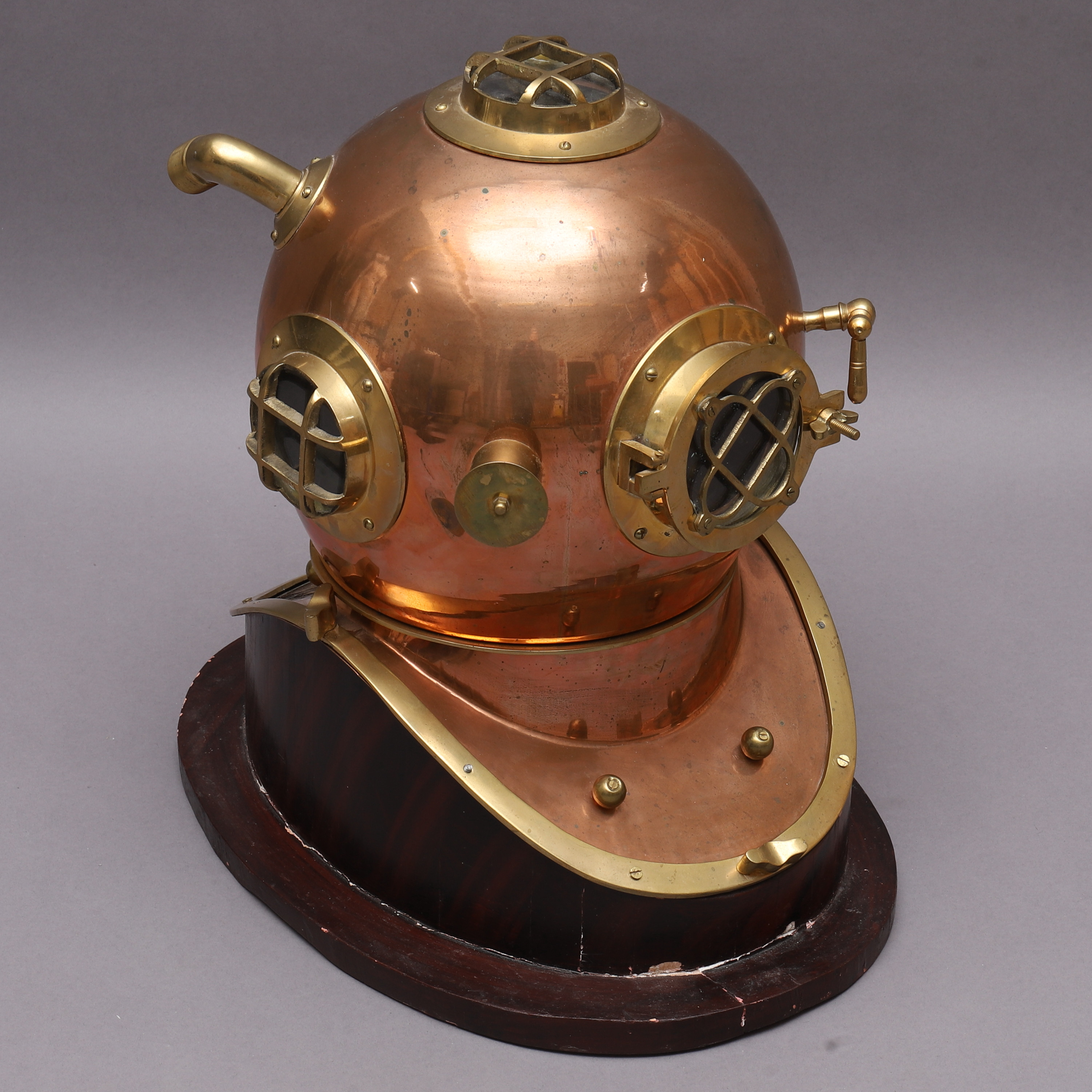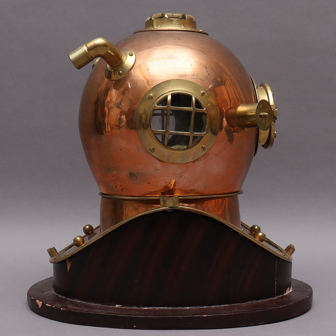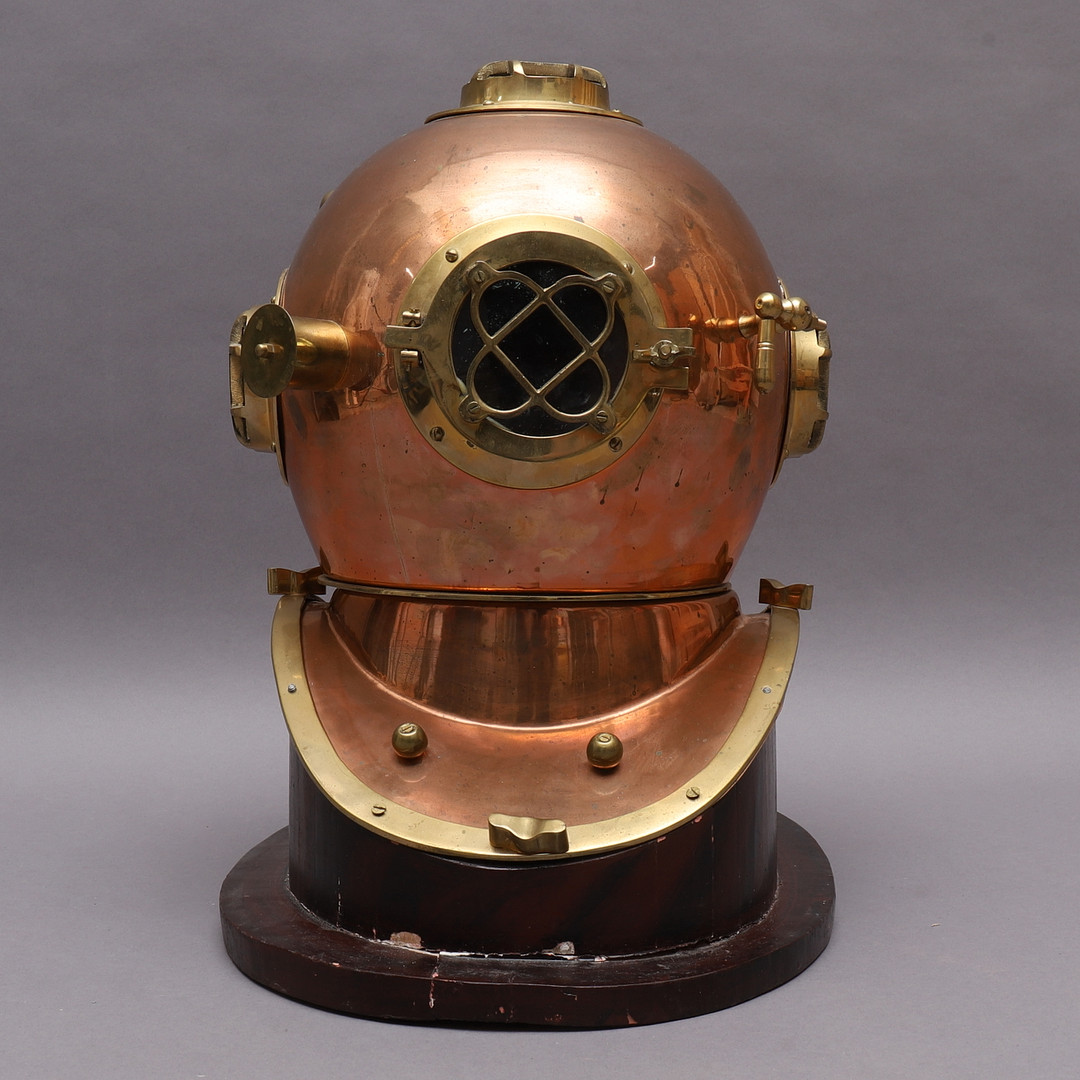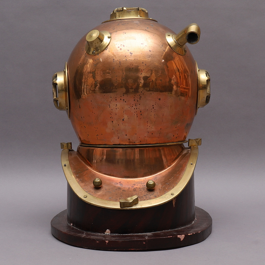 1584800. DYKKERHJELM, kobber & messing, replika/ornament.