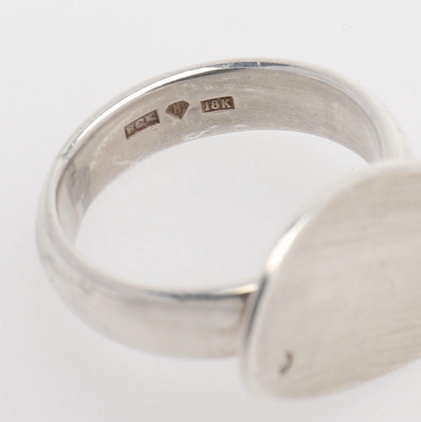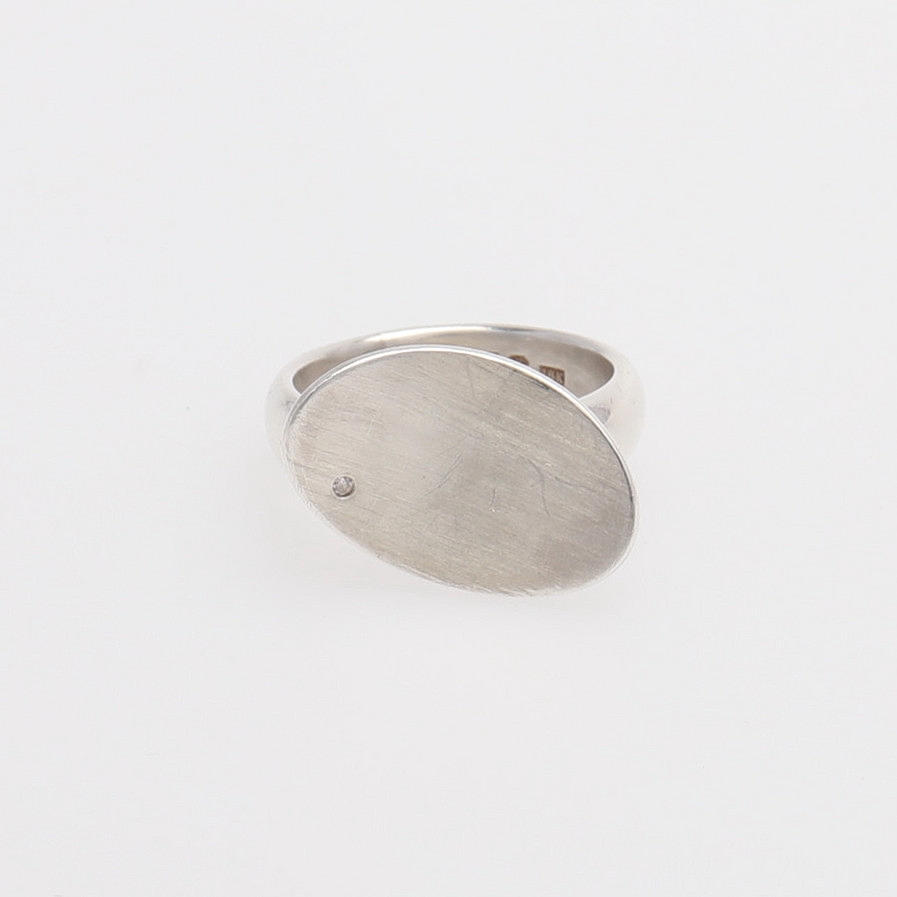 18k hvidguld, med loddet oval konkav med lille hvid sten, svenske kendetegn, str. 17 1/2, vægt 6,5 gram.