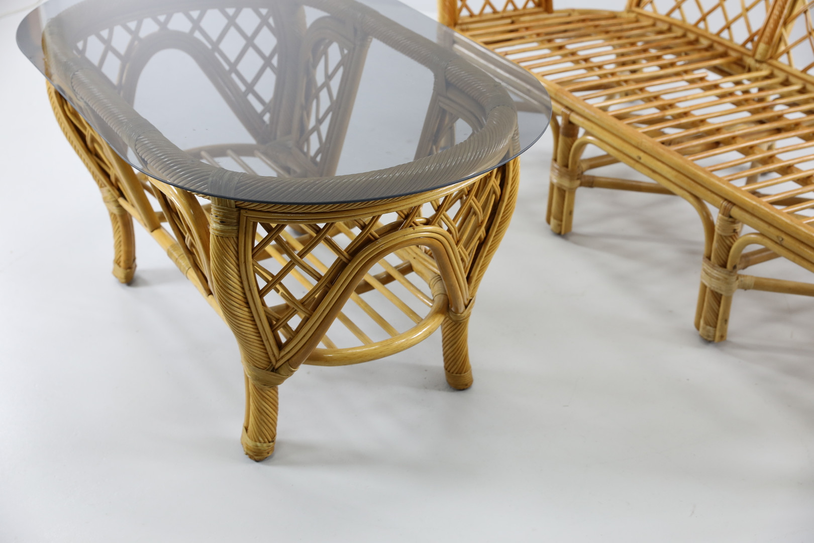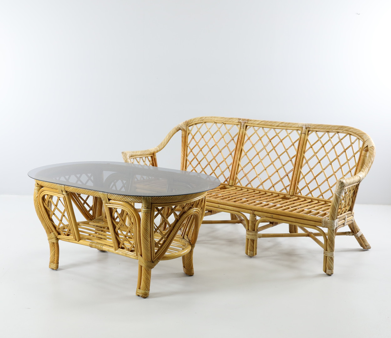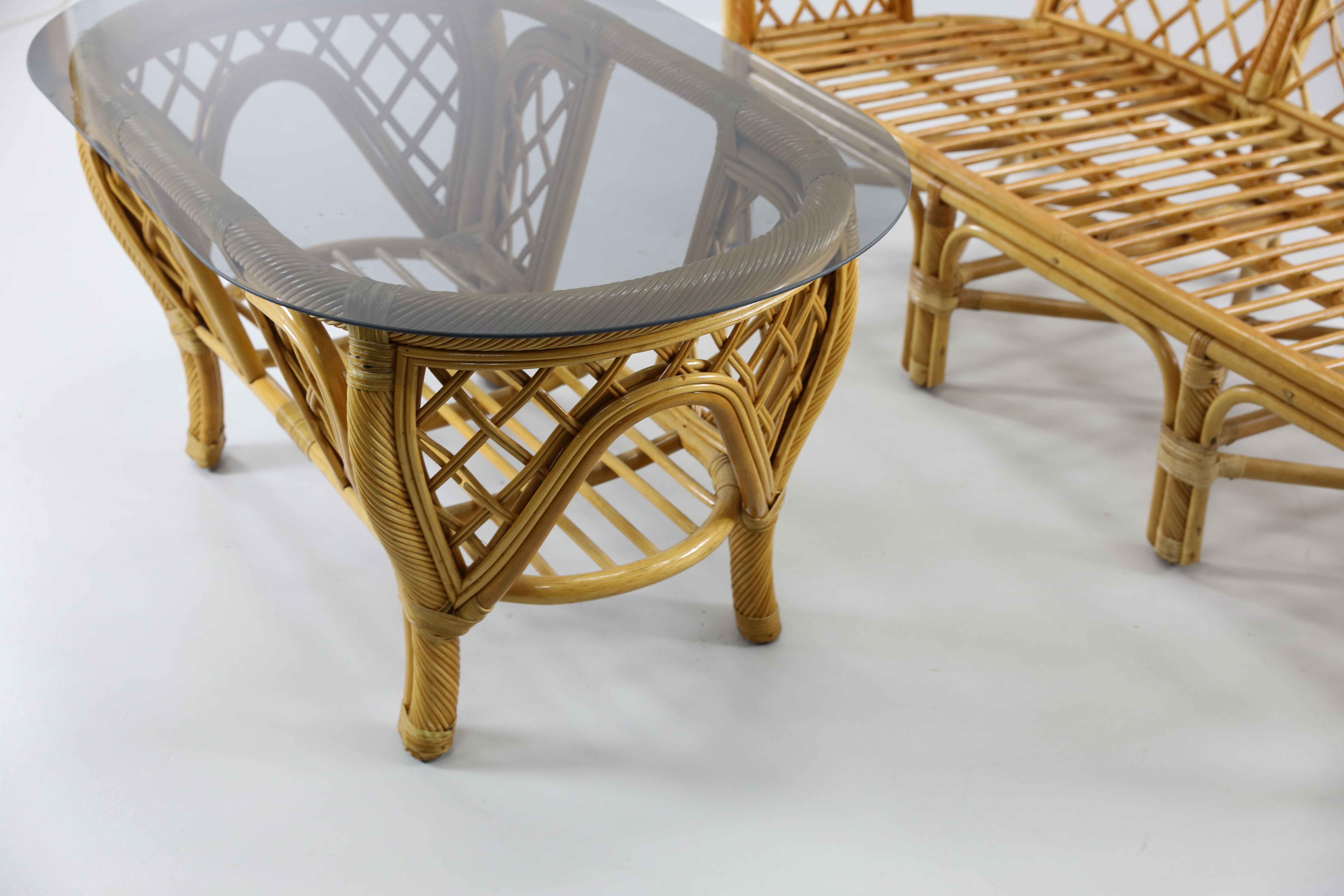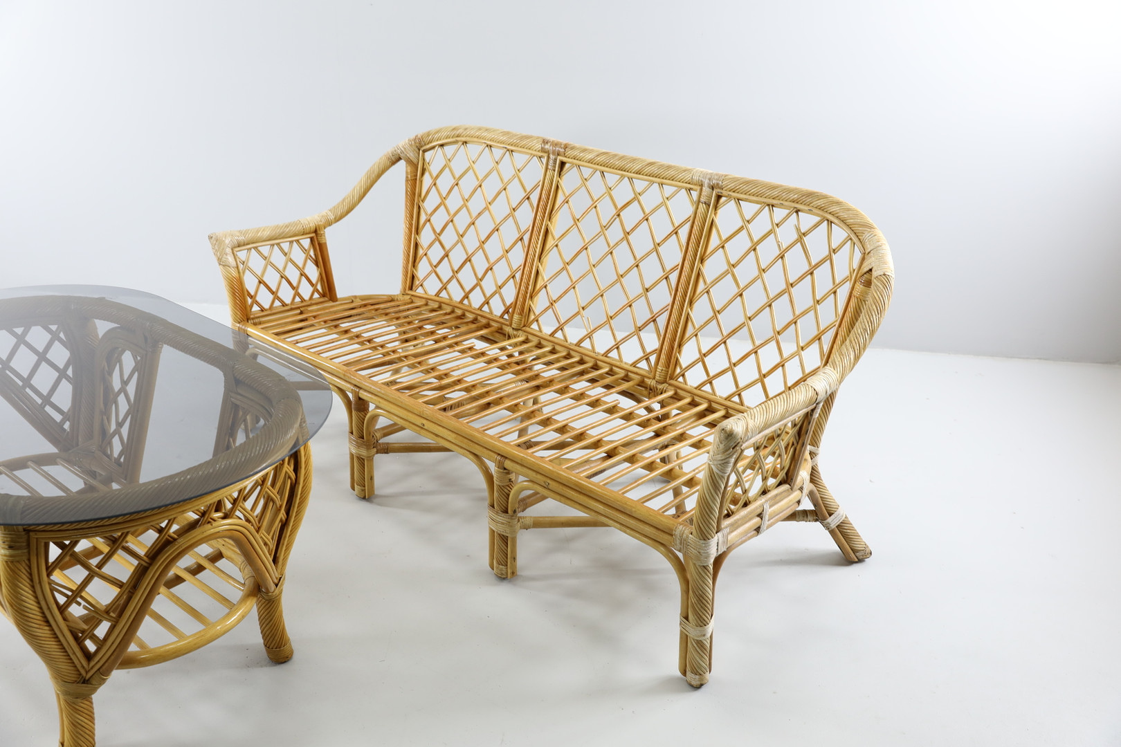 1591784. RATTAN SOFA og RATTAN BORD, 1900 tallet.