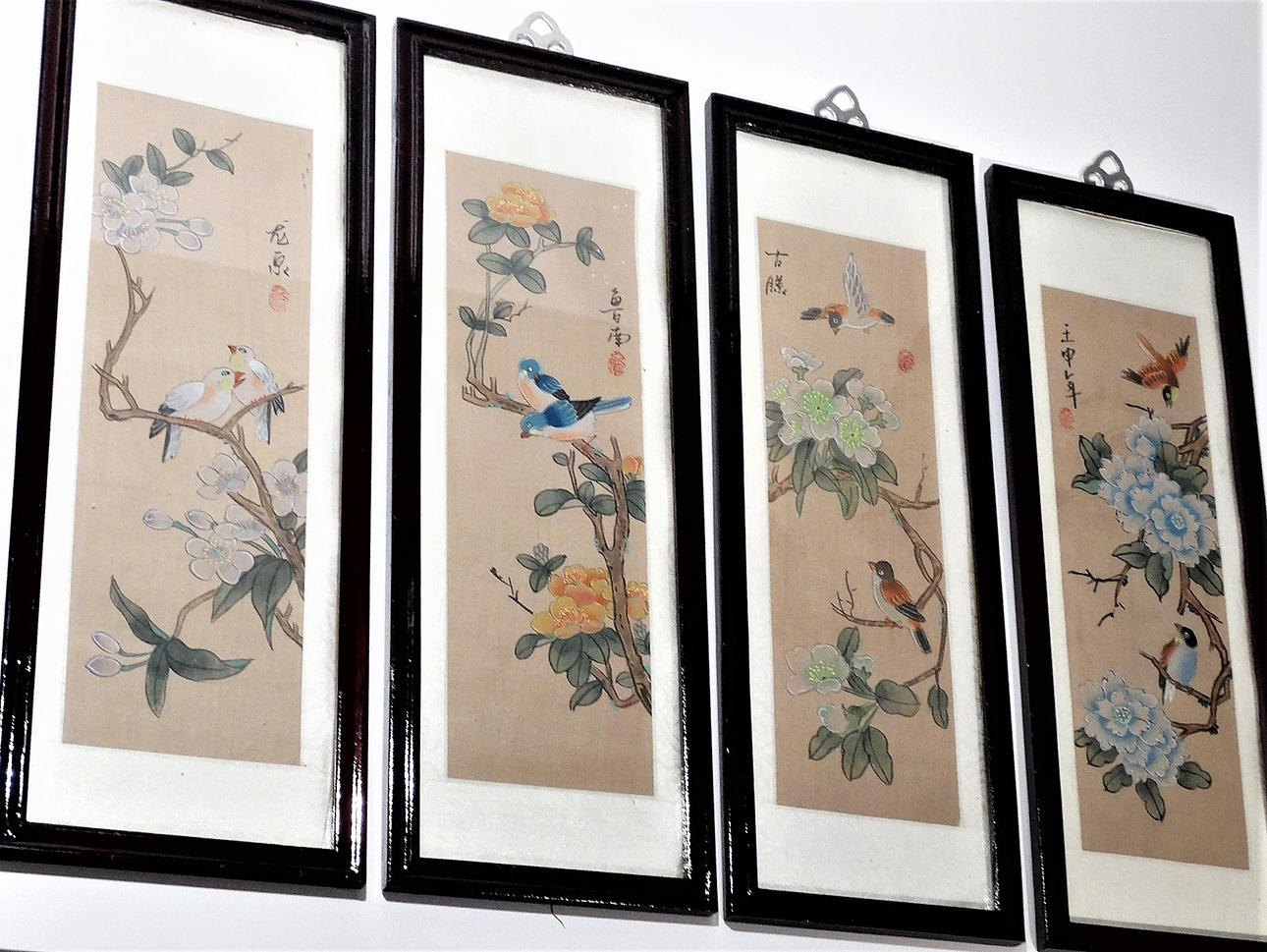 Fra Kina, indrammet, hver ca. 14 x 40 cm.