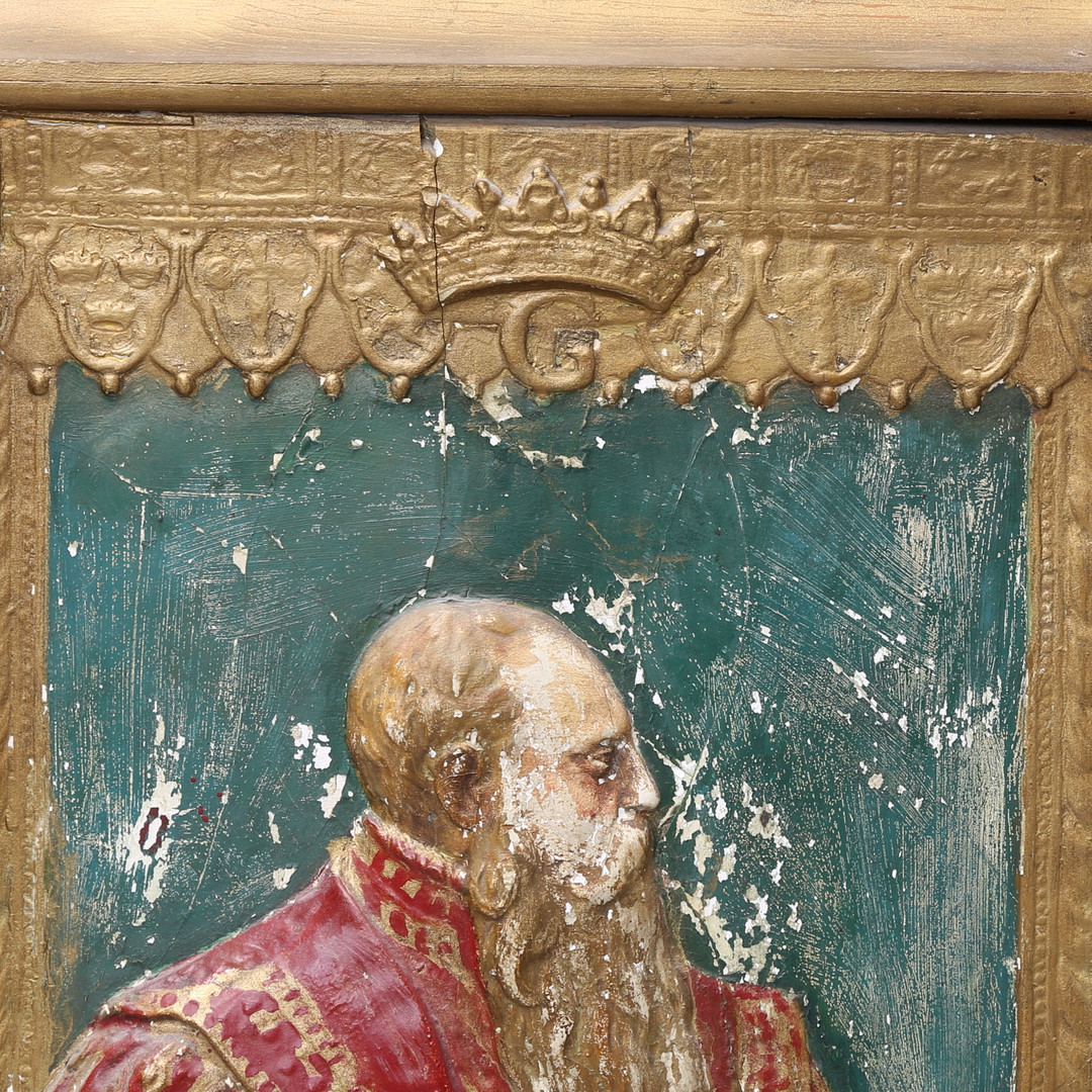 1592450. OIDENTIFIERAD KONSTNÄR. Maleri, "Gustav Vasa", gips.