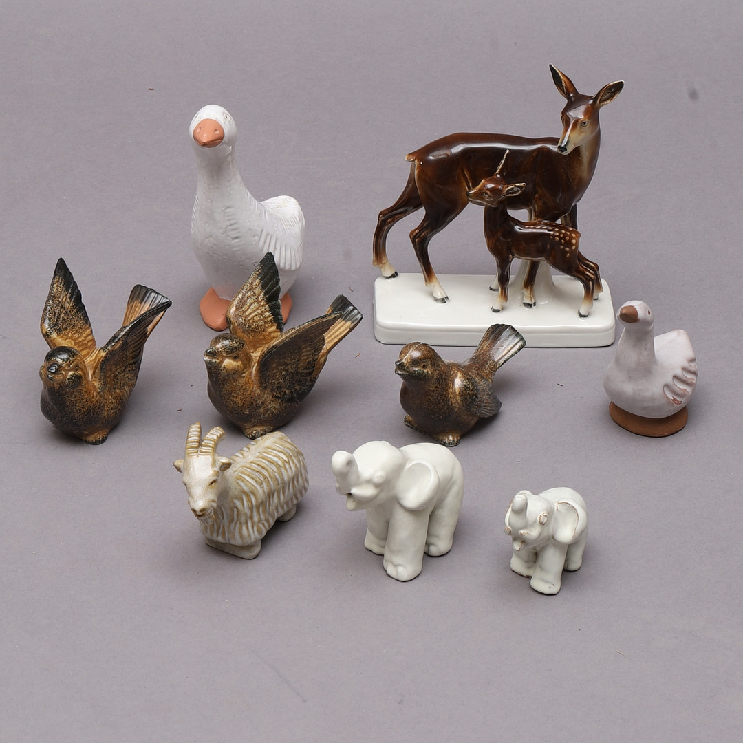 1600042. FIGURER, 9 stk, dyr, keramik.