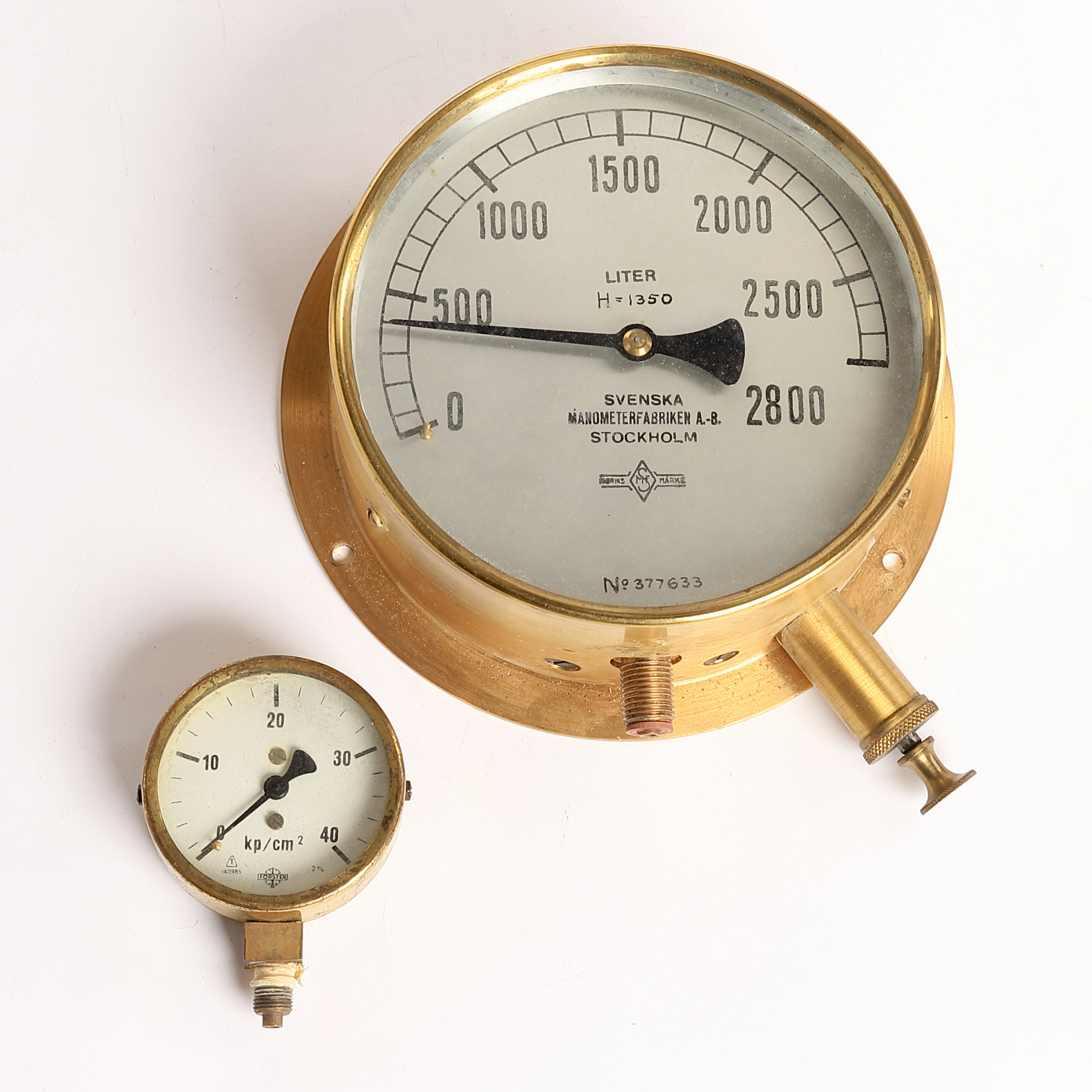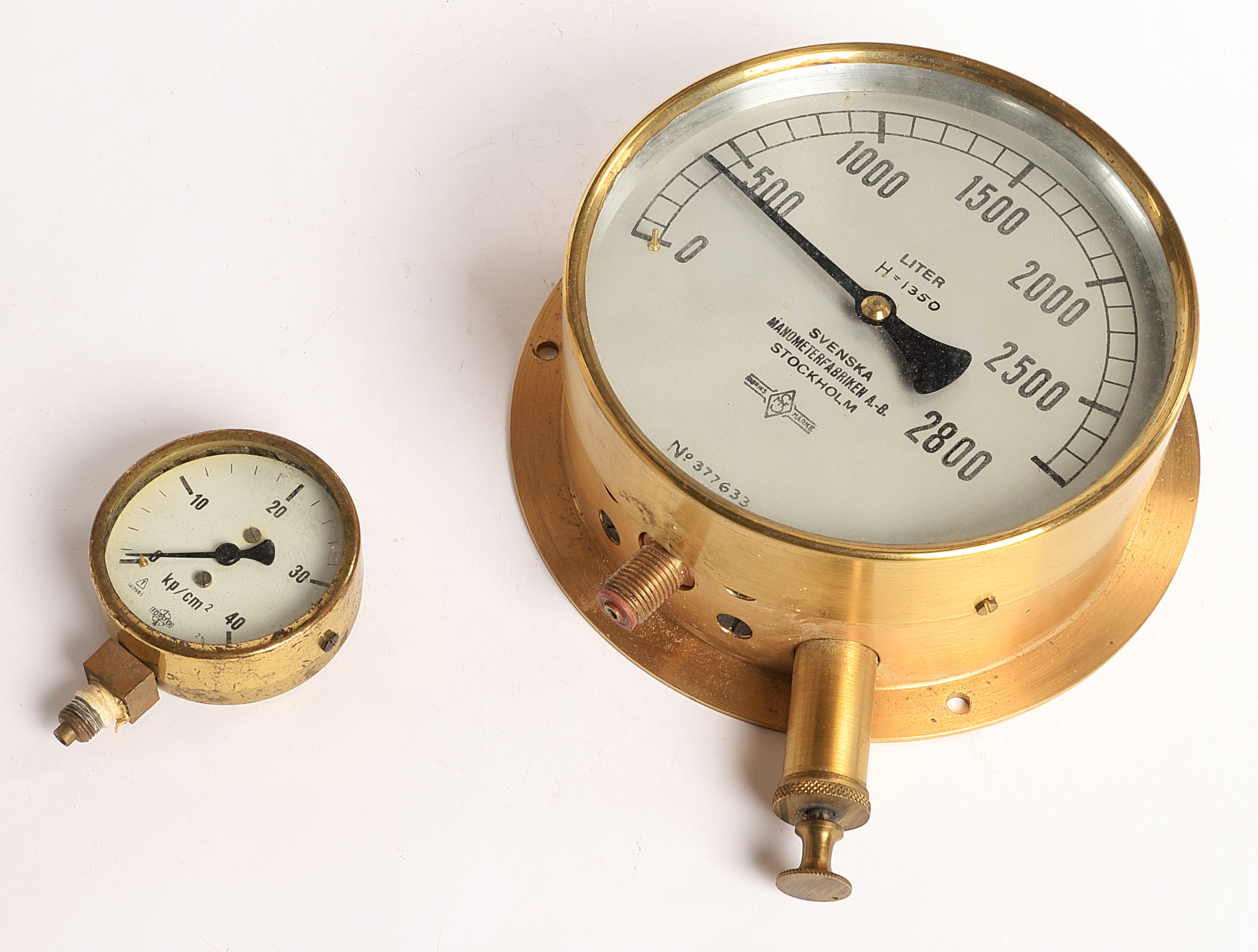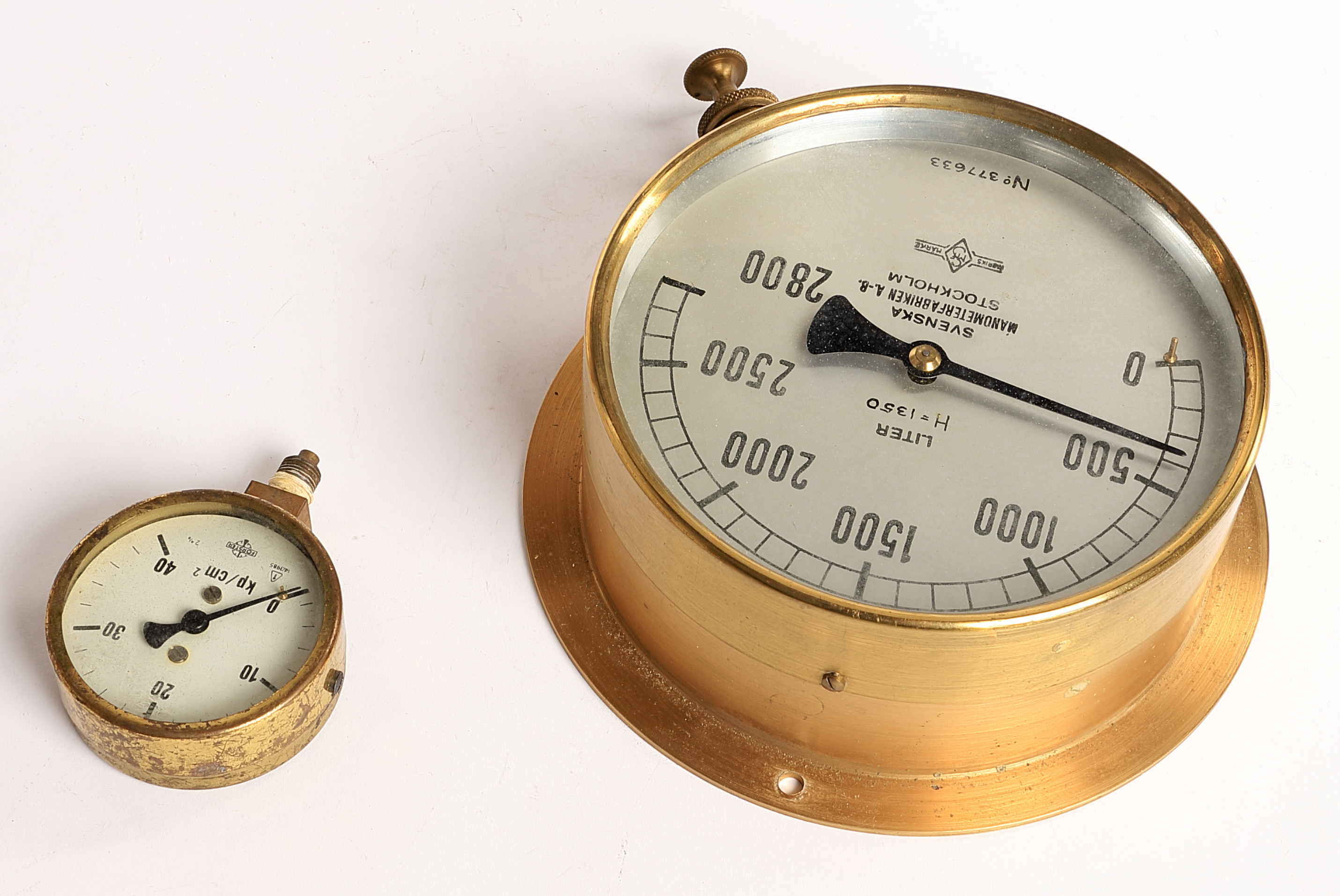 1605527. TRYKMÅLER, 2 stk., 1900-tallet, messing.