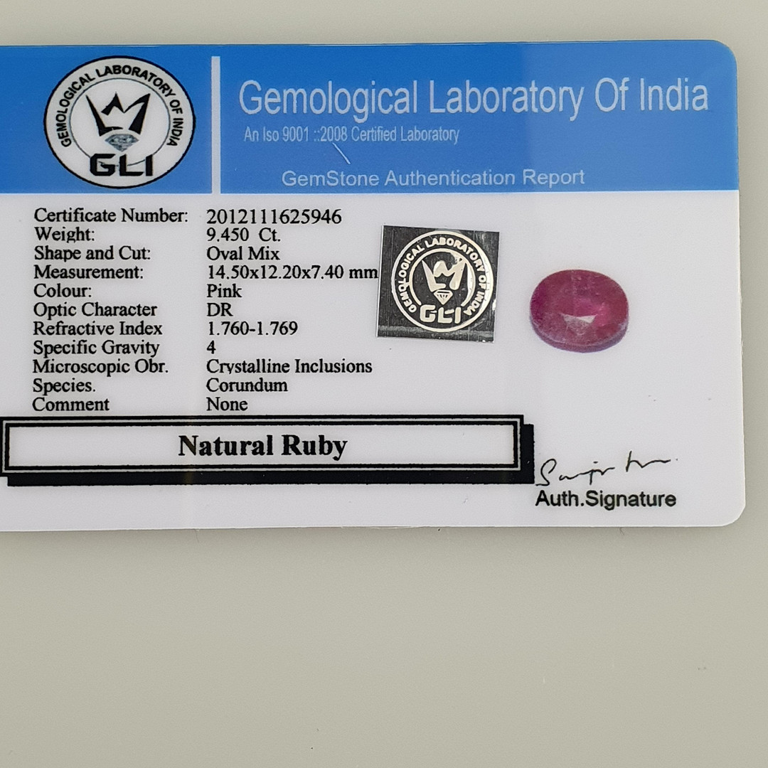 1606445. - 9,45 ct naturlig rubin ædelsten.