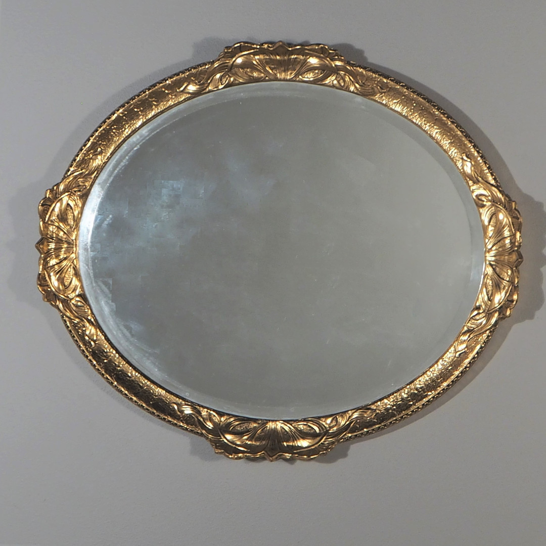 1608378. SPEJL, oval med guldramme, 20. århundrede.