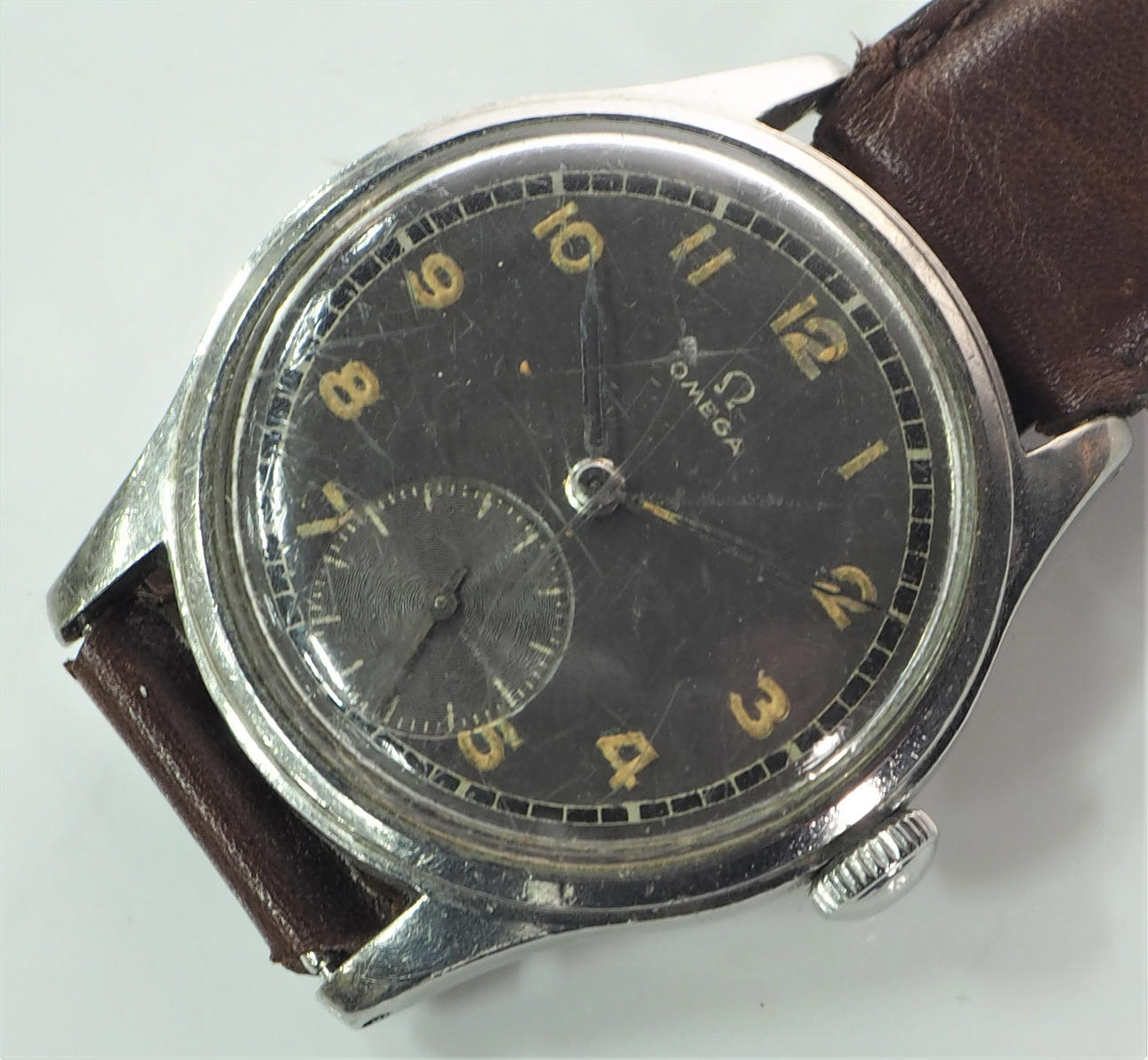 Manual, stål, armbånd i brunt læder.