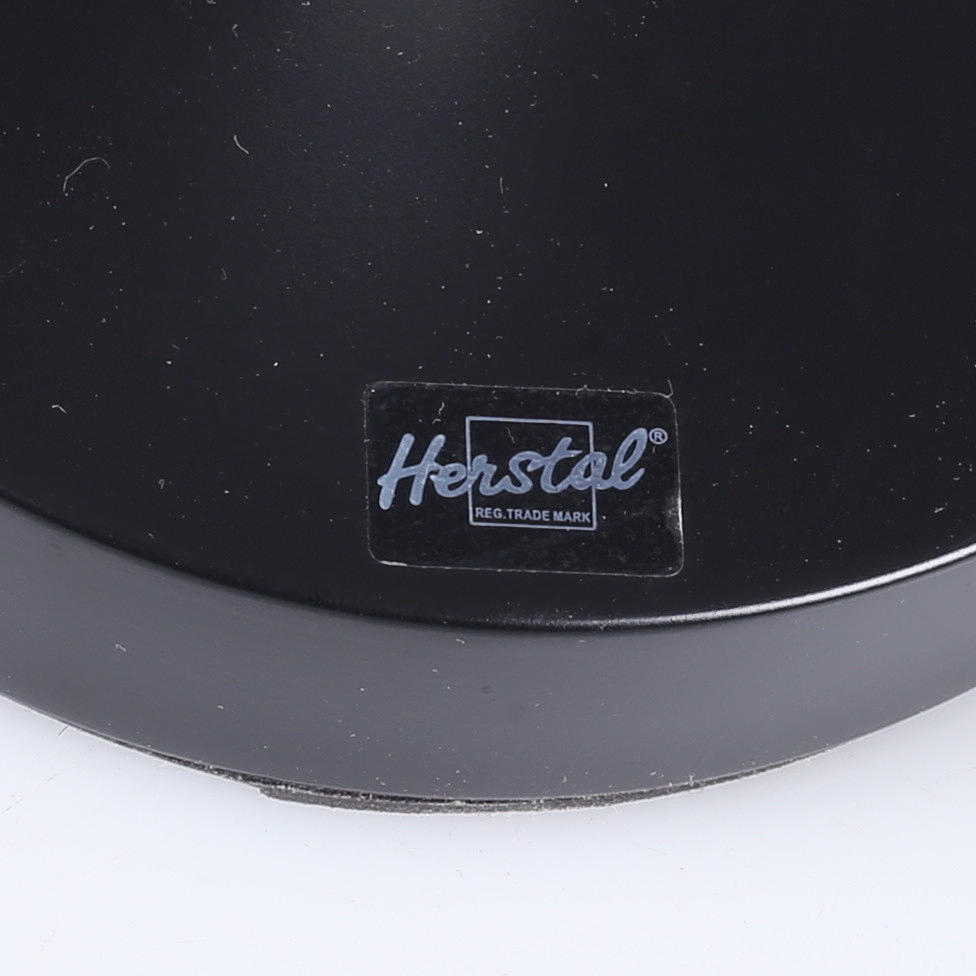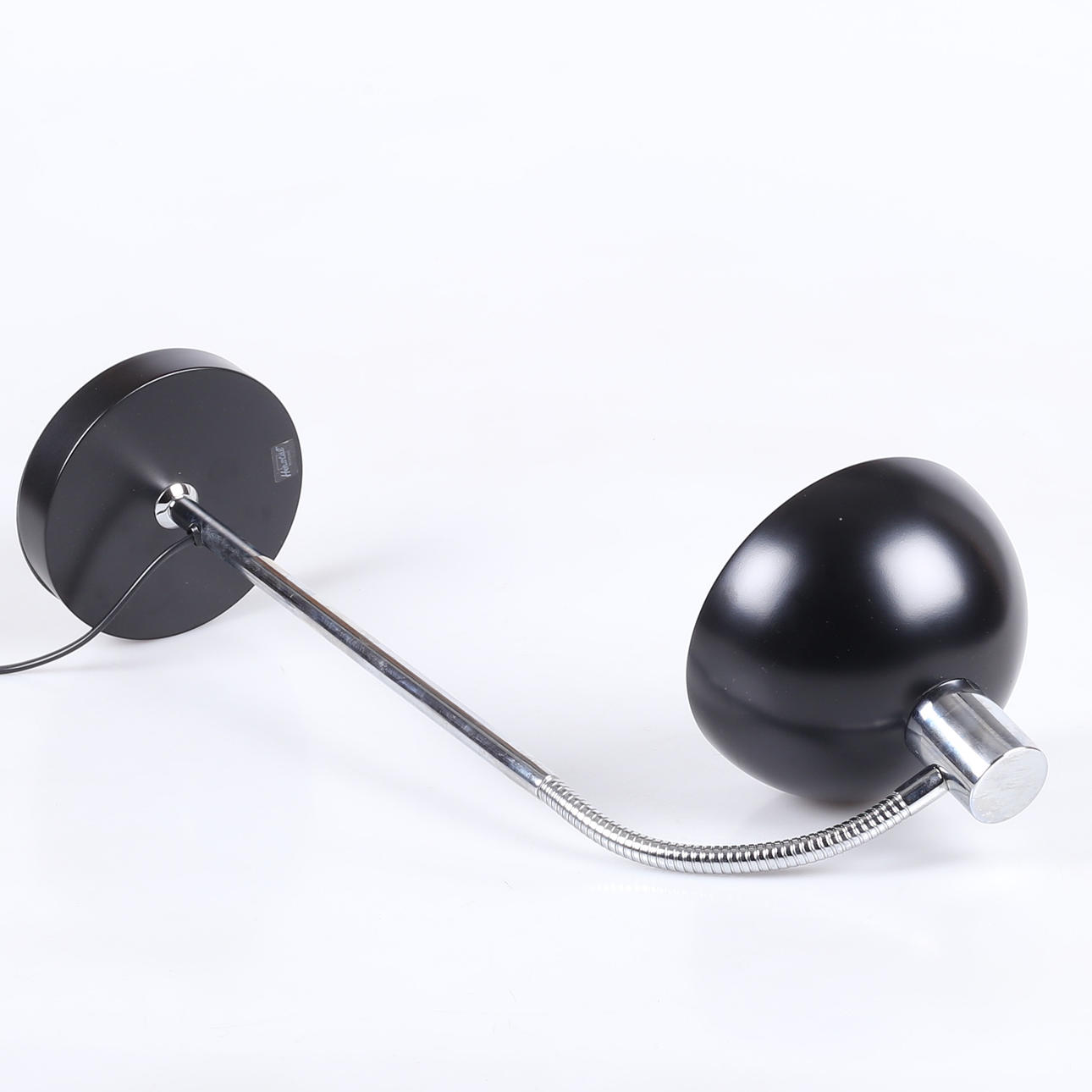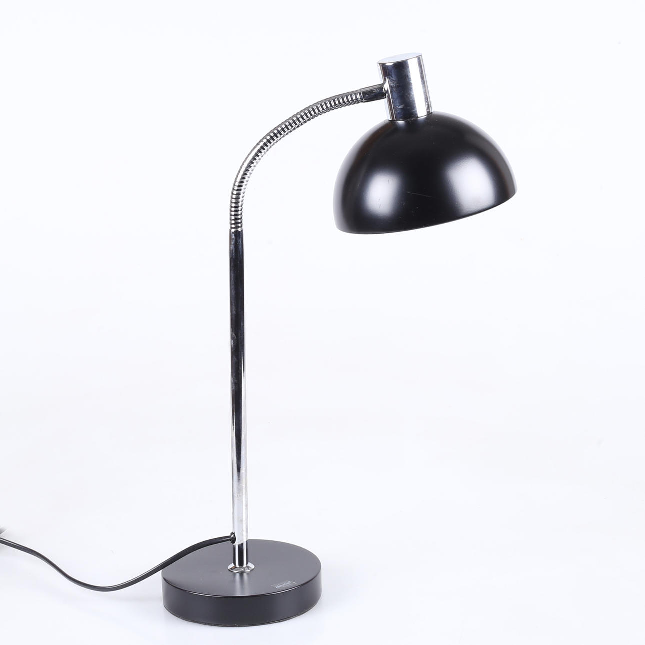 Sortlakeret og forkromet metal, bøjelig arm, højde ca 46 cm.