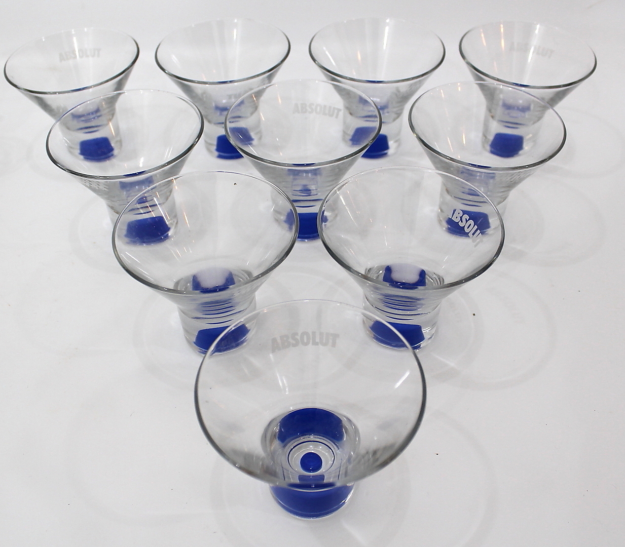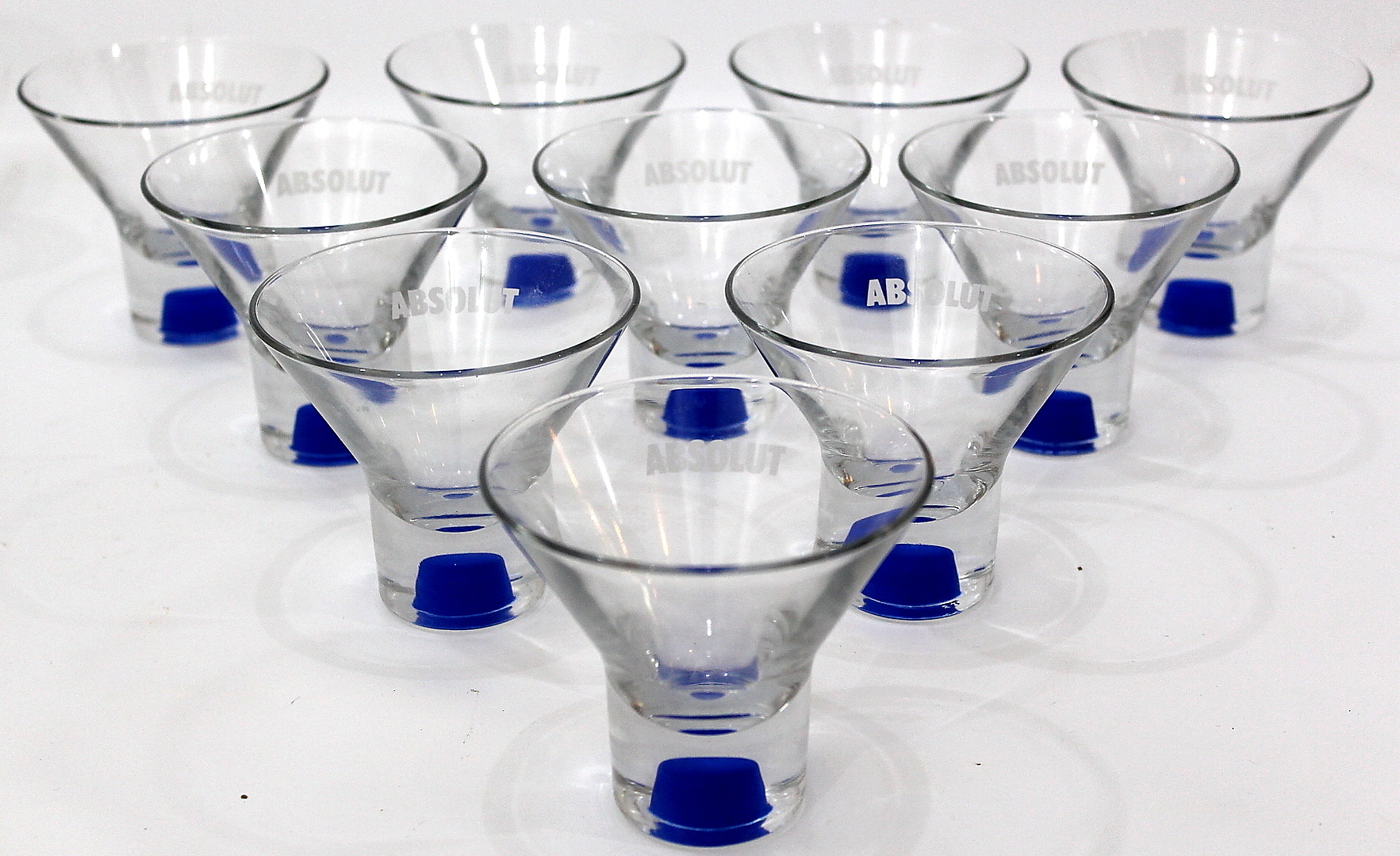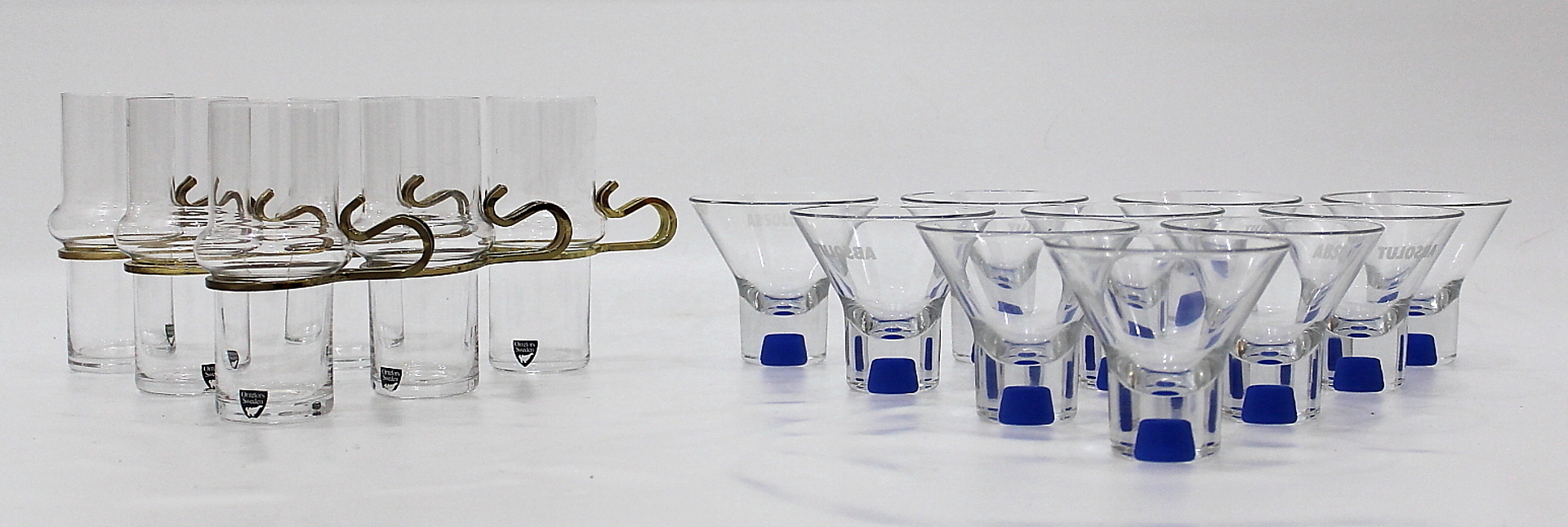 161464. IRSK KAFFEGLAS Orrefors og 10 Absolut Vodka glas.