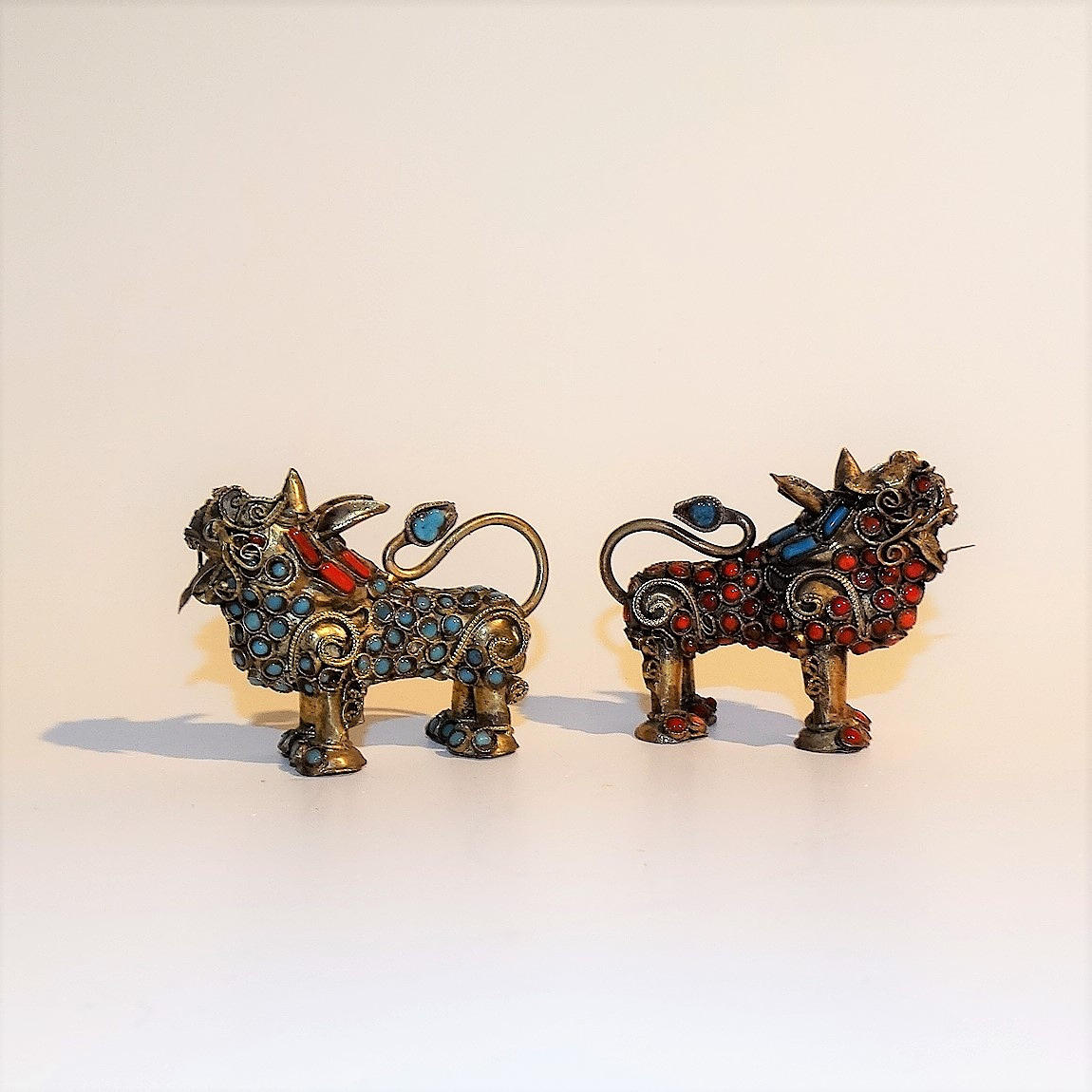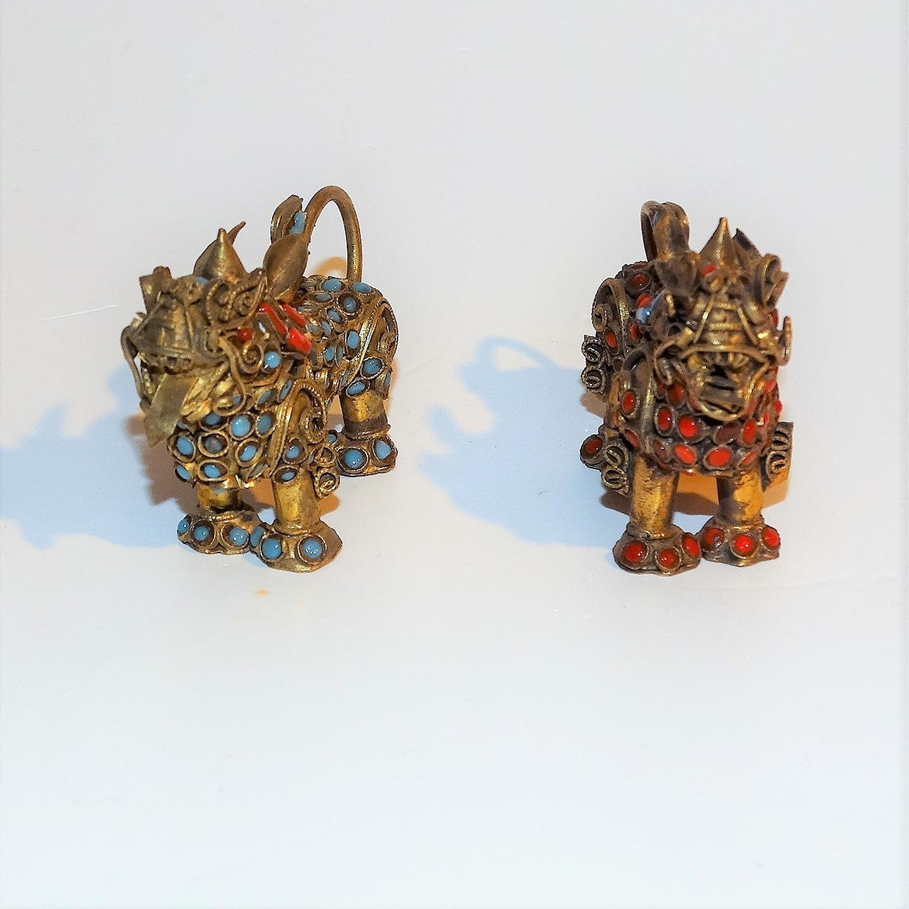 Messing, koral, turkis, ca. 5 x 4 cm hver.