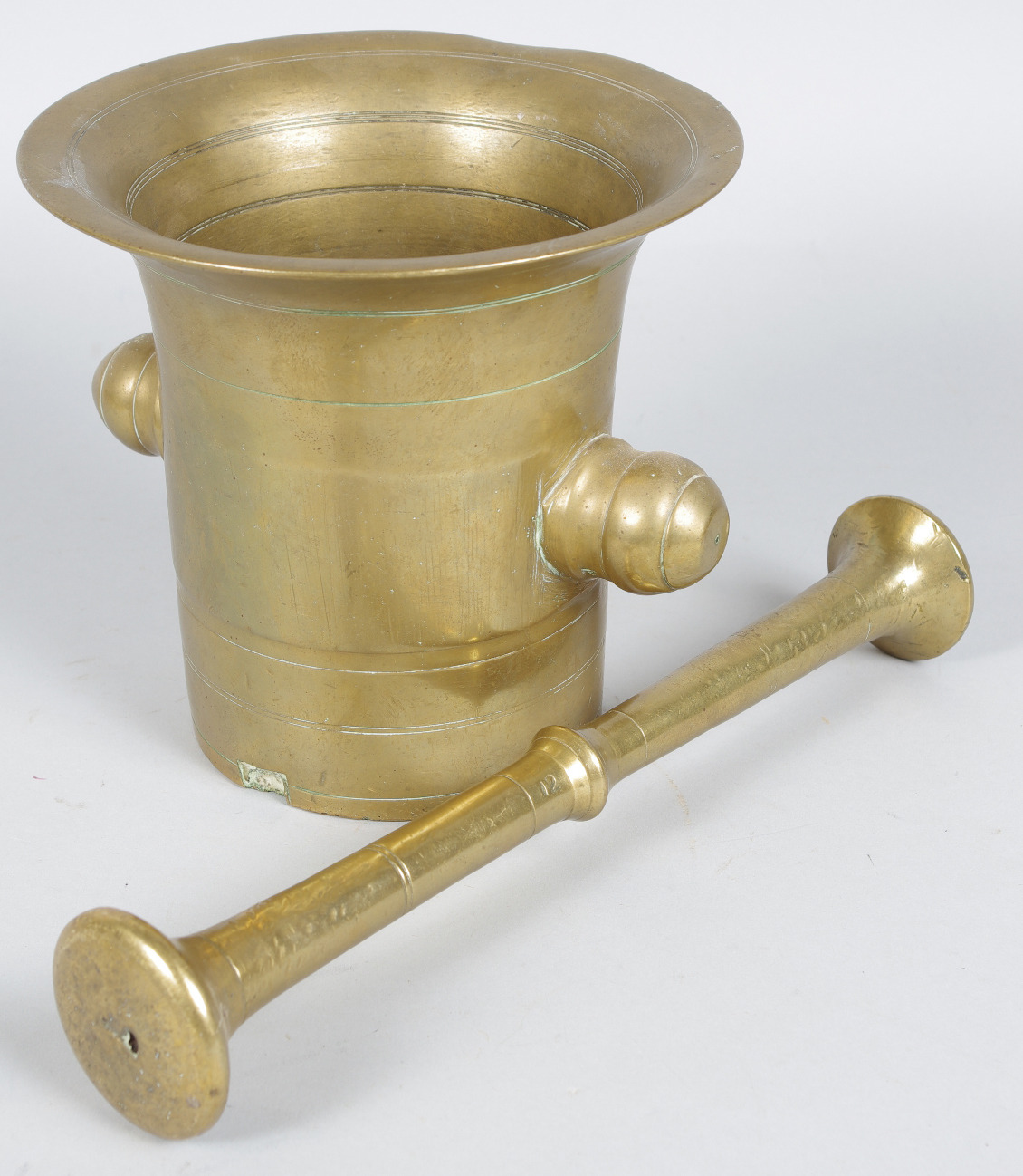 162134. MØRTEL MED STØD, messing, ca 7 kg.