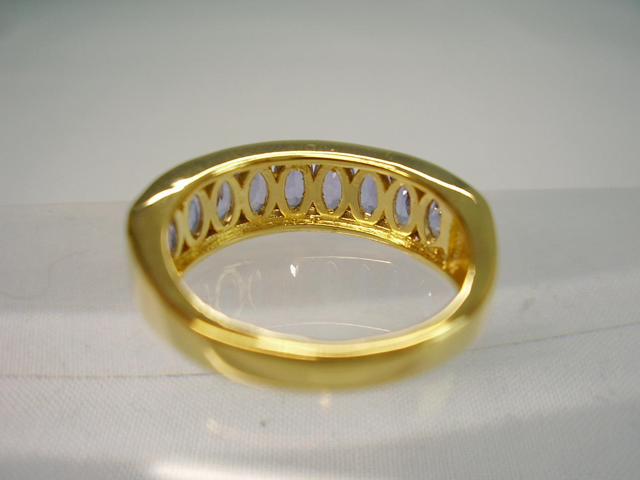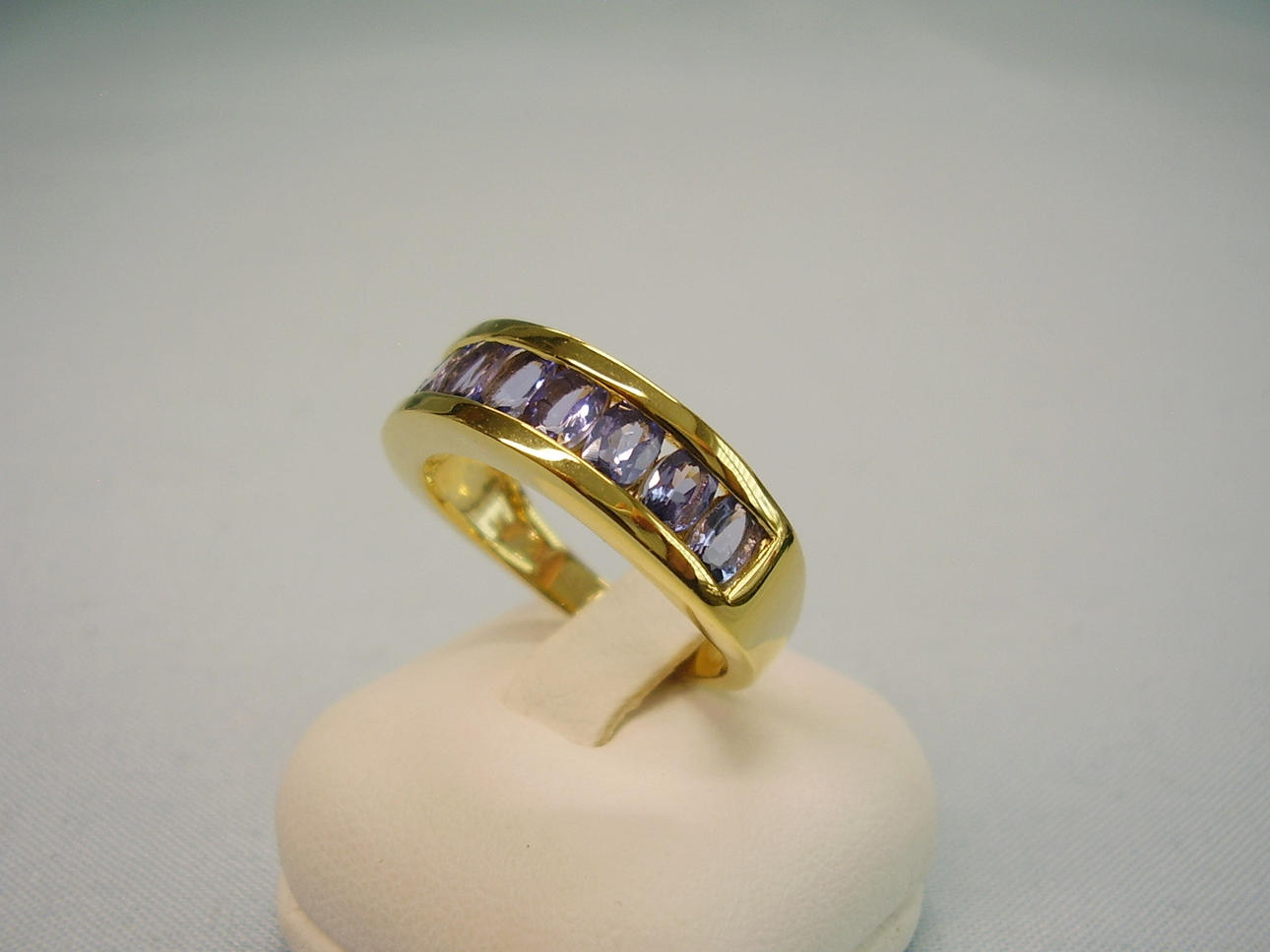 Designet som en halv evighedsring og sat med 9 ovale facetslebne tanzanitter på 2,5 ct.