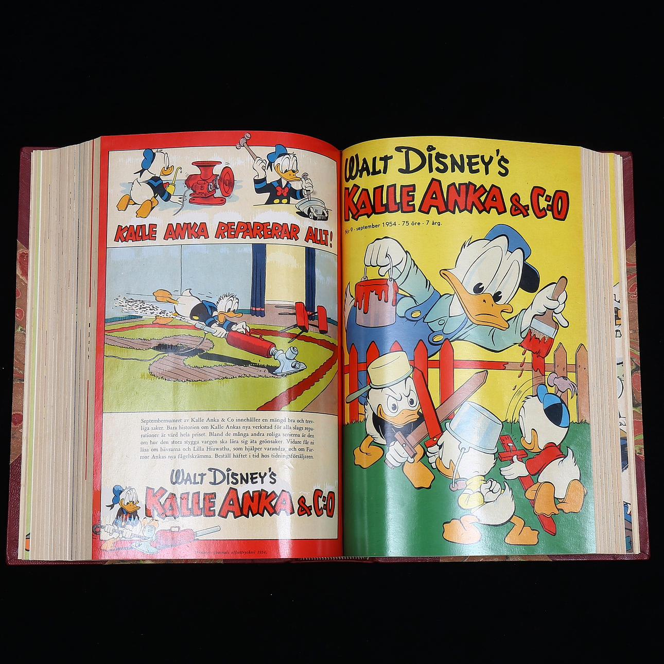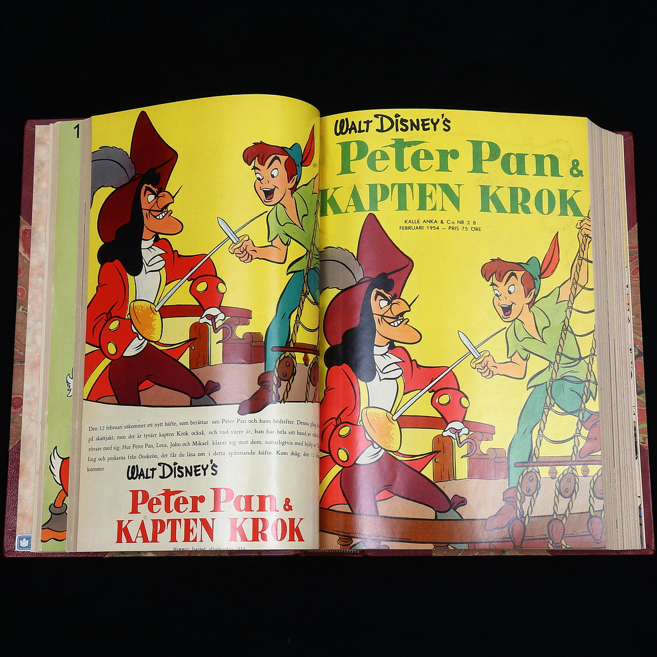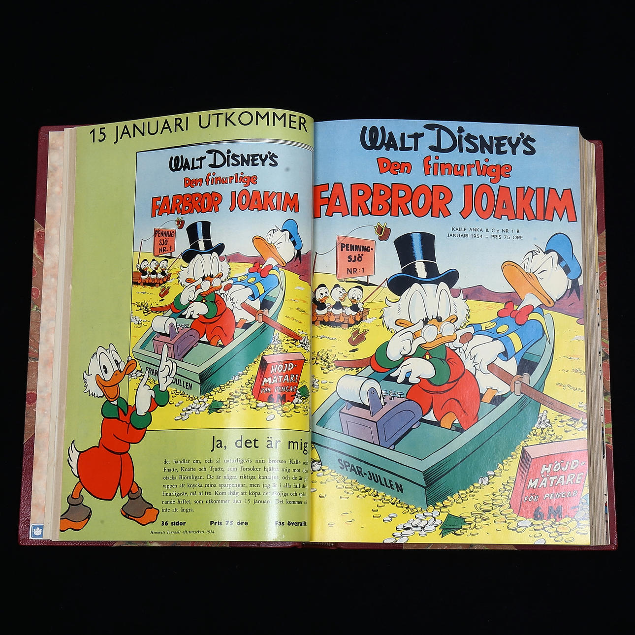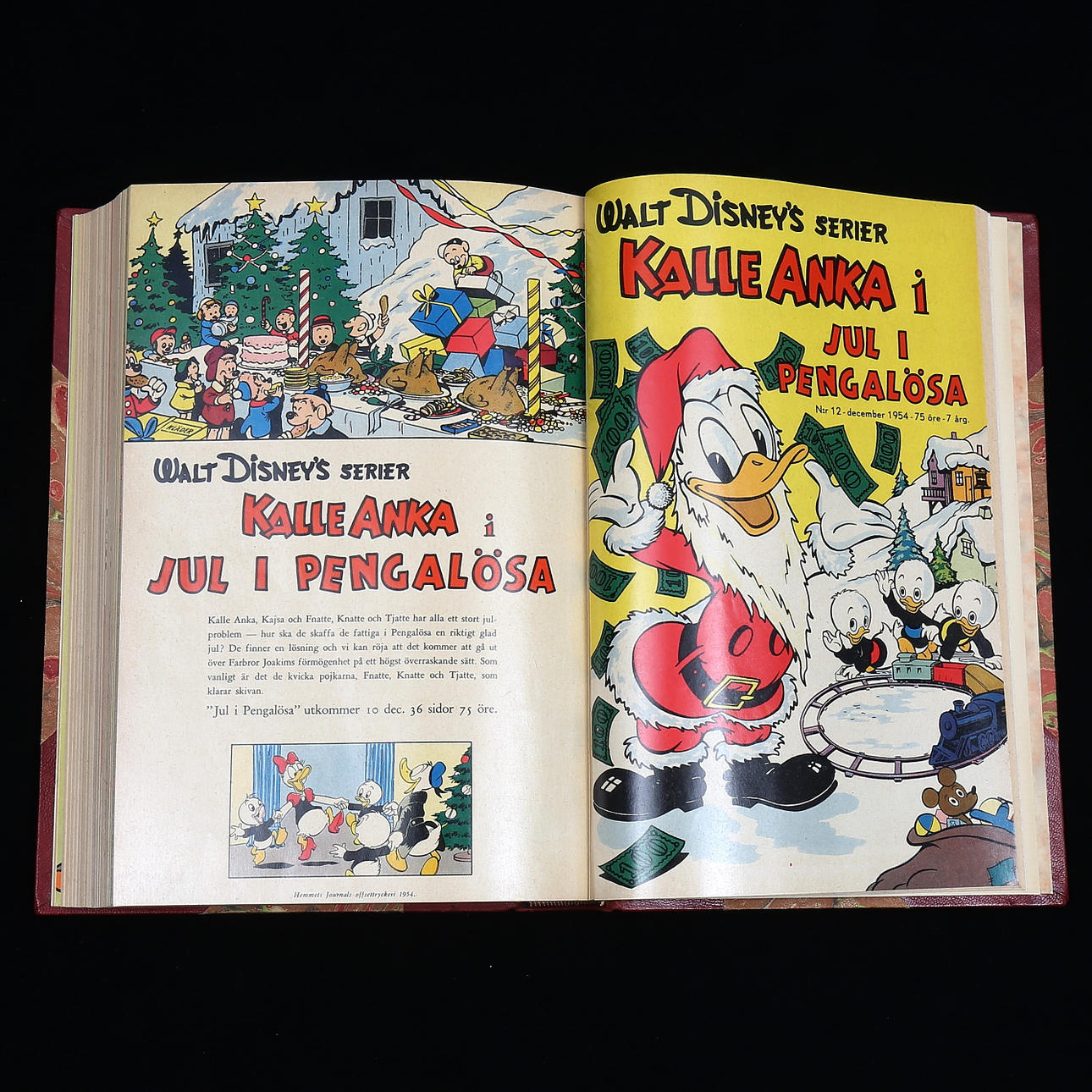 Komplet Vintage 1954 numre 1-12 inklusive Walt Disney Series Quirky Uncle Scrooge, Peter Pan & Captain Hook, Little Hiawatha, Fedtmule, Little Naughty Wolf, Holiday Parade, Anders And Lives Camp, Mickey Mouse and the Enchanted Car, Anders And and the Golden Gås hjelmen, Mickey Mouse på den mystiske gård, juleparaden, Anders And jul i Pengalösa.