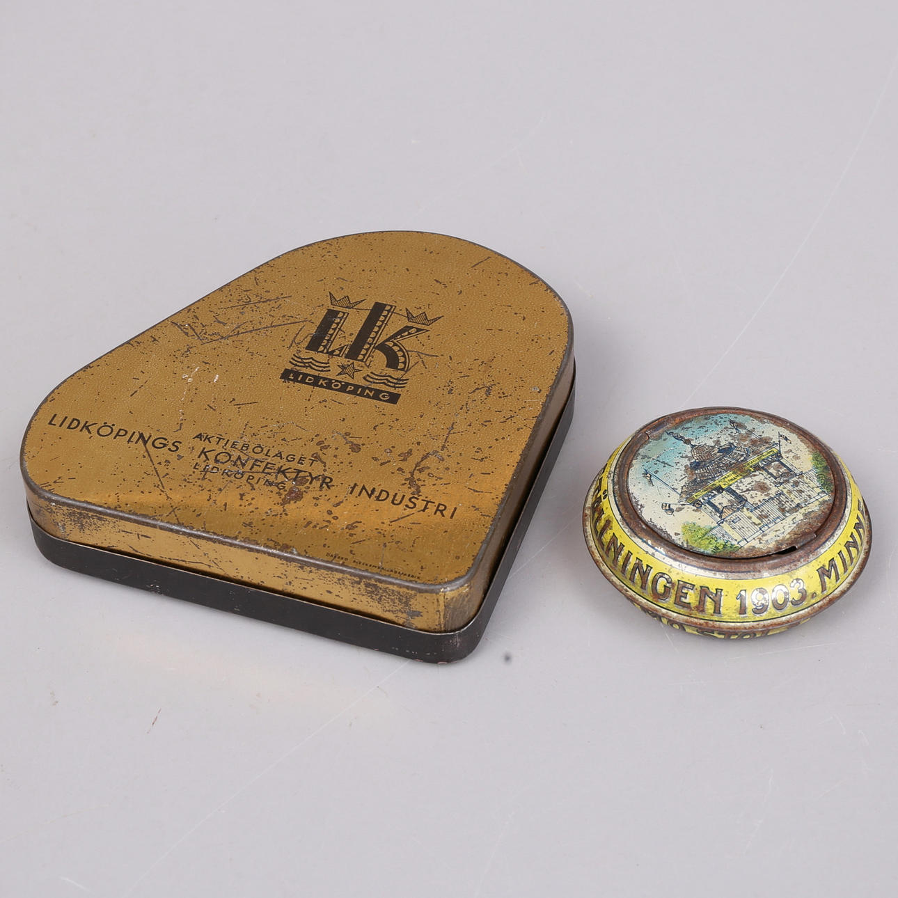 Blikdåse "Memory from Wernamo Exhibition 1903" diameter 7 cm.