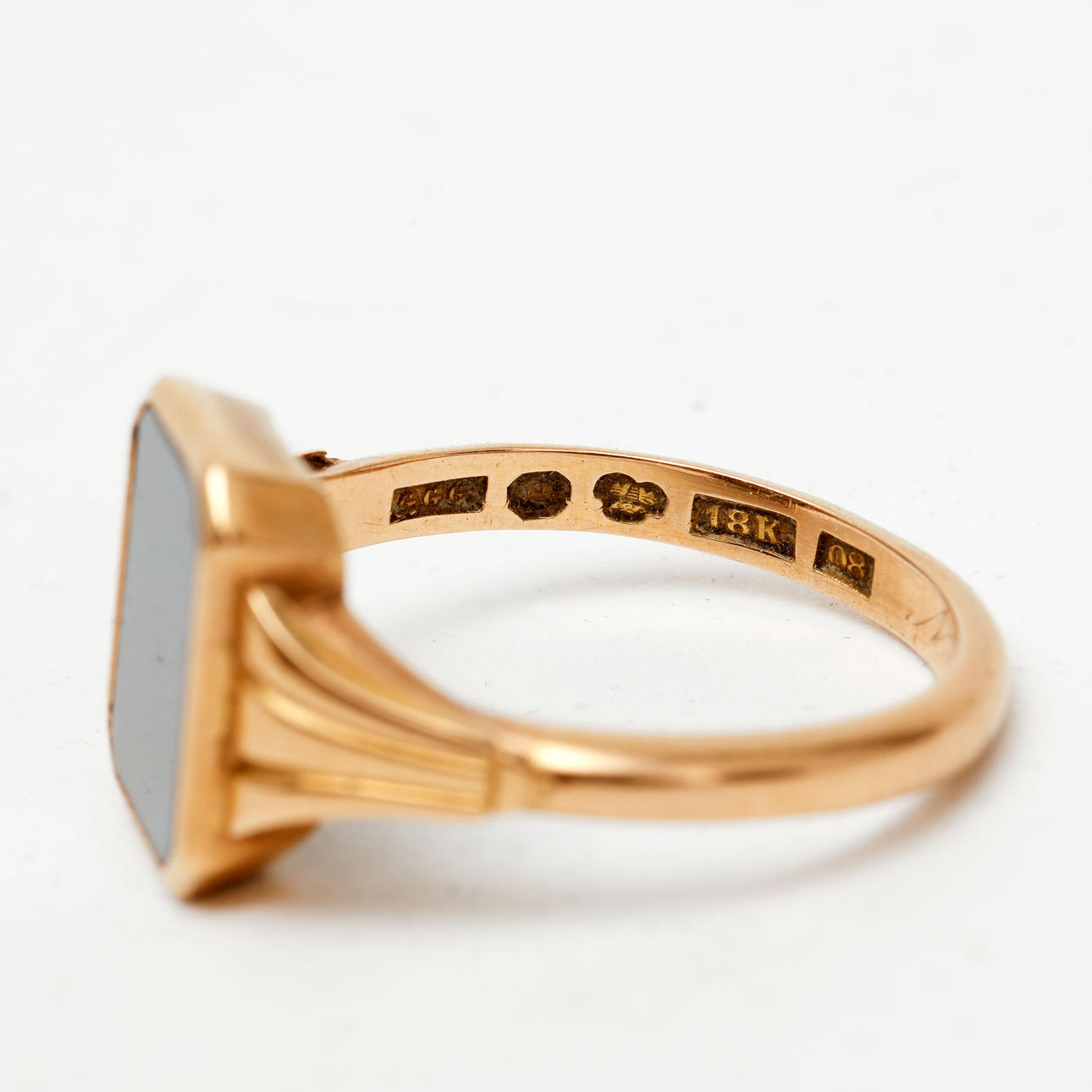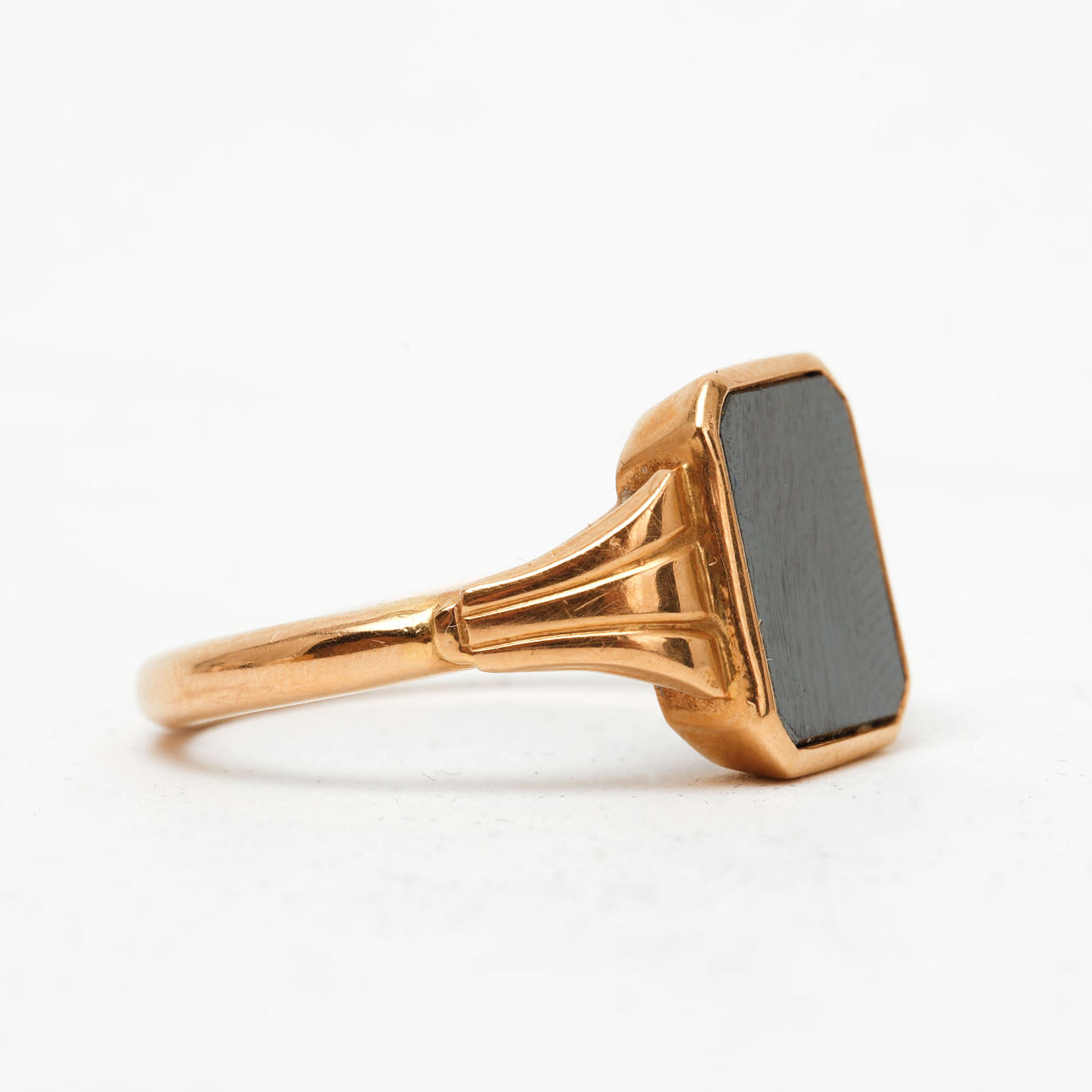 1632073. RING, 18 karat guld, sort onyx. Vægt ca 7,3 gram.