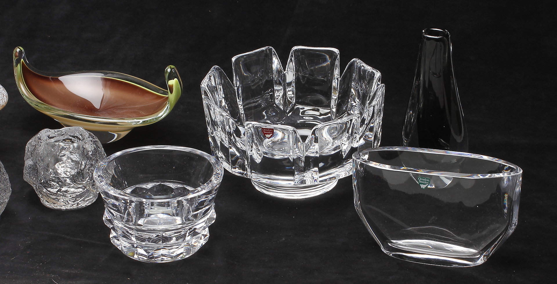 163814. GLAS OBJEKTER, 11 dele, bl.a. Orrefors, Iittala.