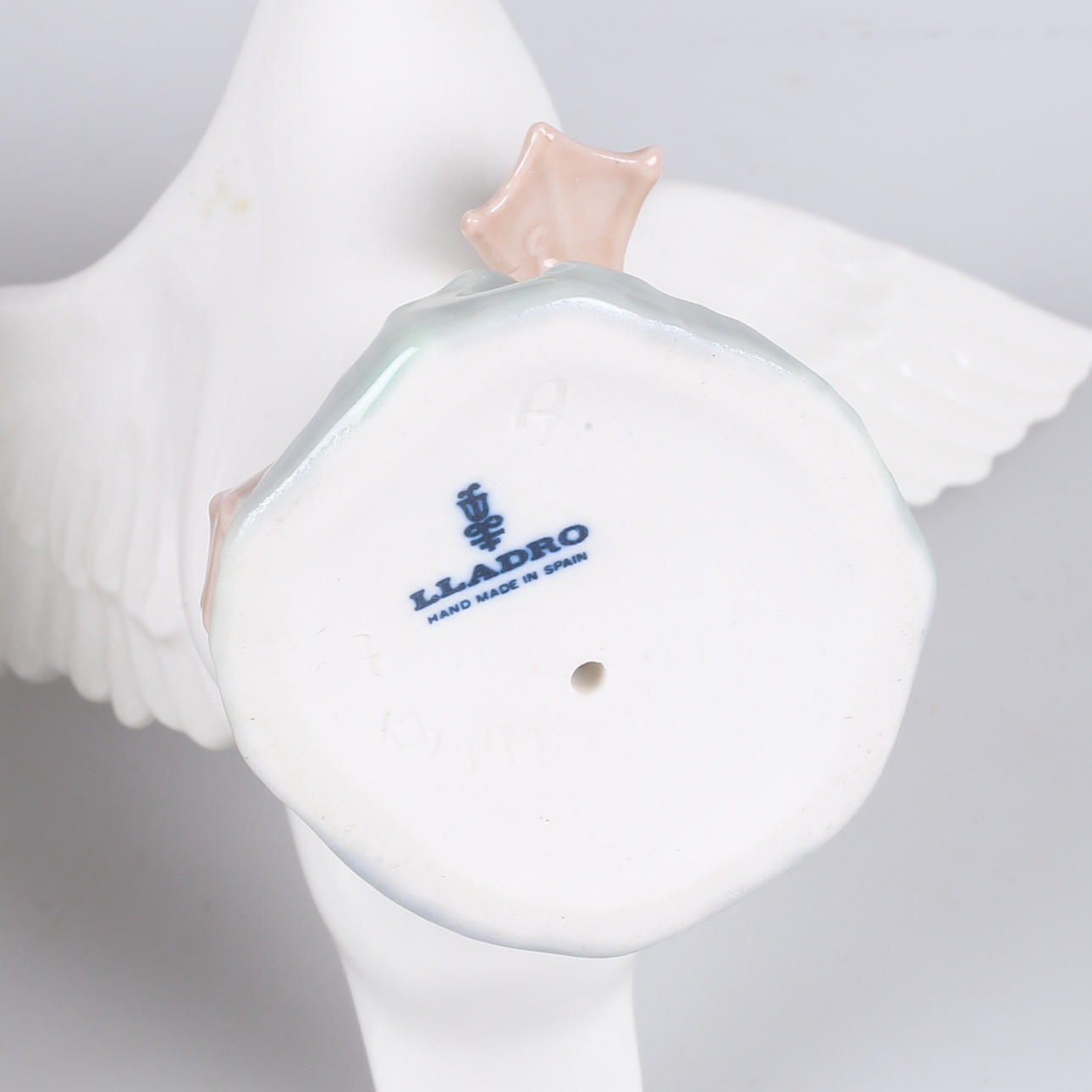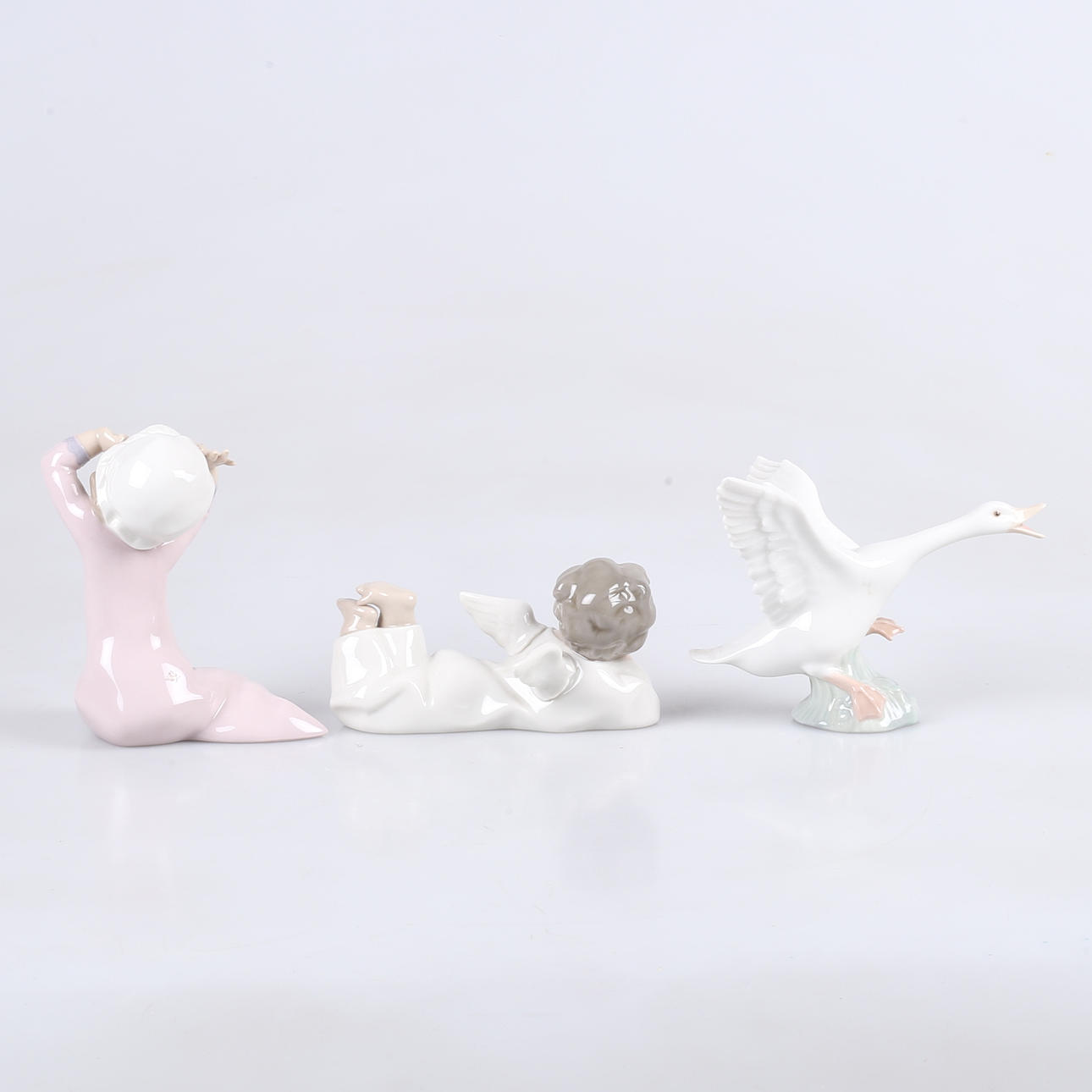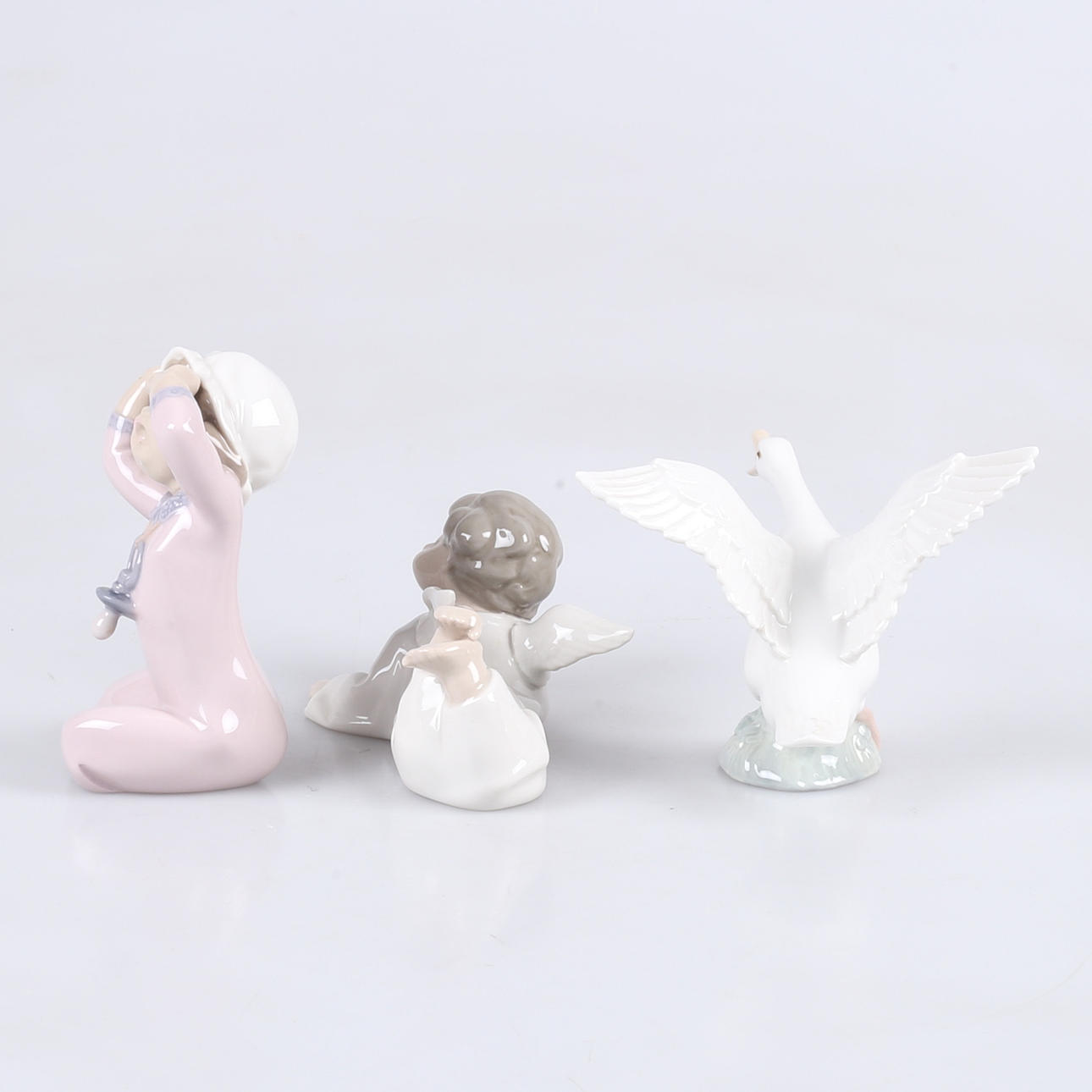 Liggende kerub, længde 13,5 cm Pige med sut, højde 13 cm Hvid and, længde 16 cm.