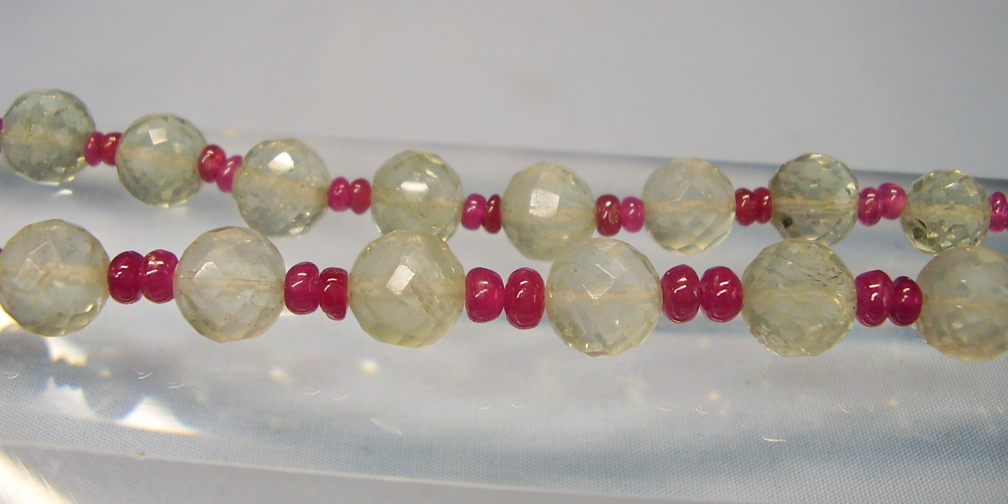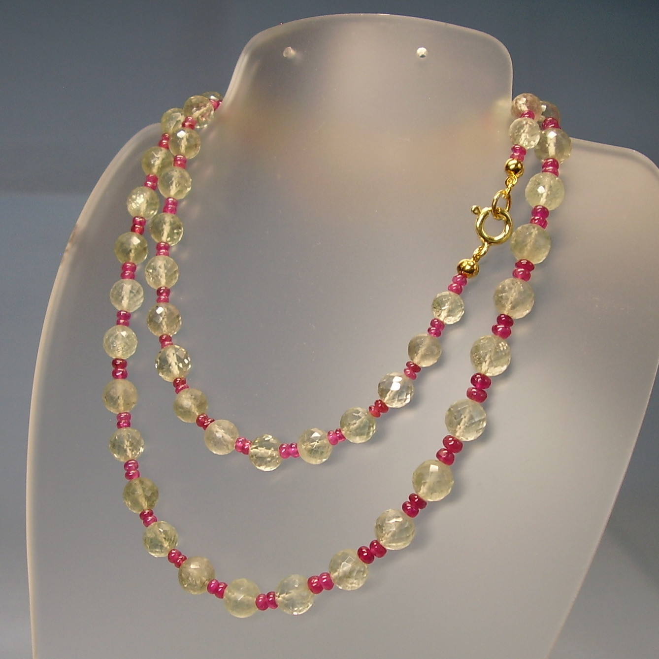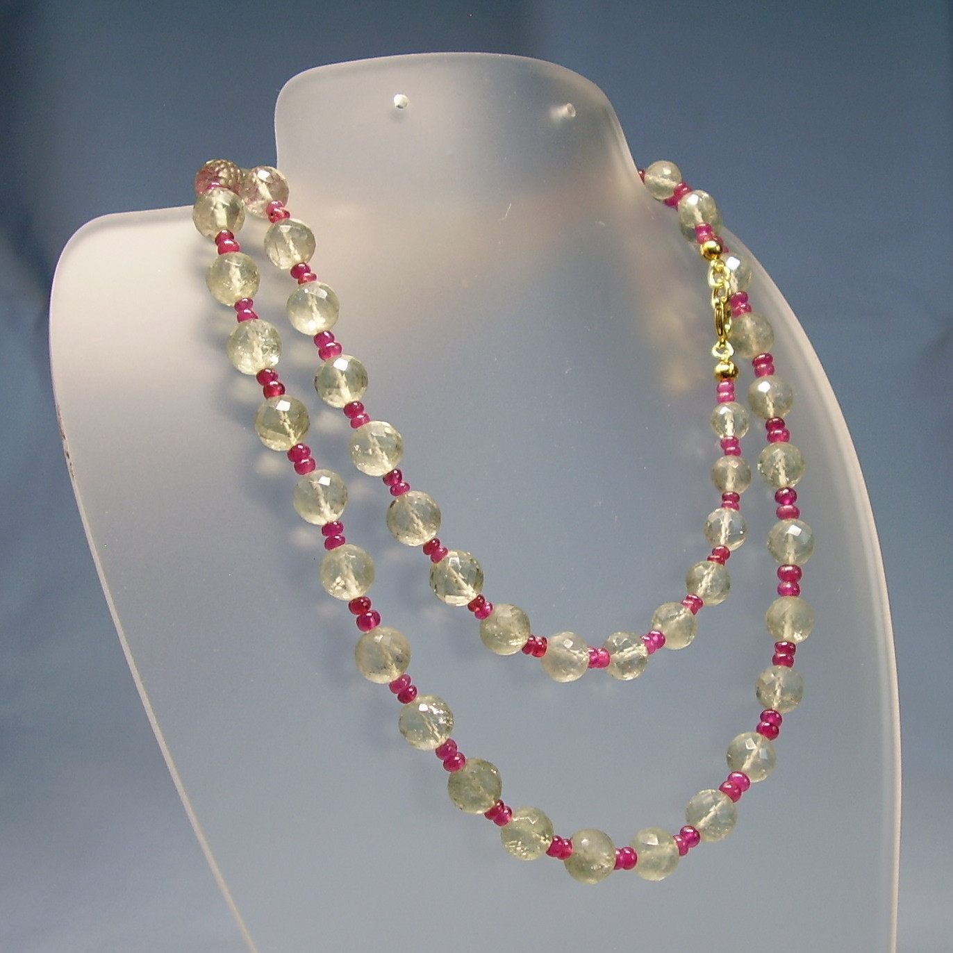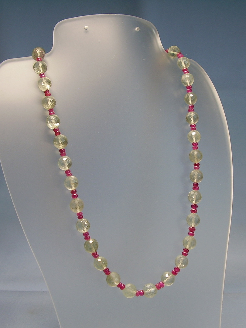 1643468. PRASIOLITH - RUBY HALSKÆDE UNIK.