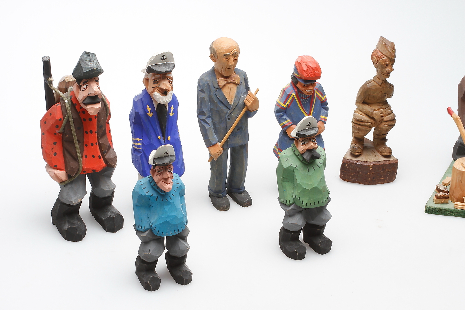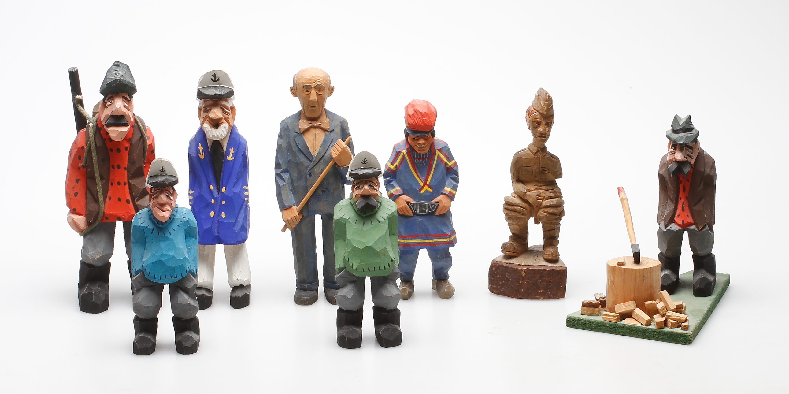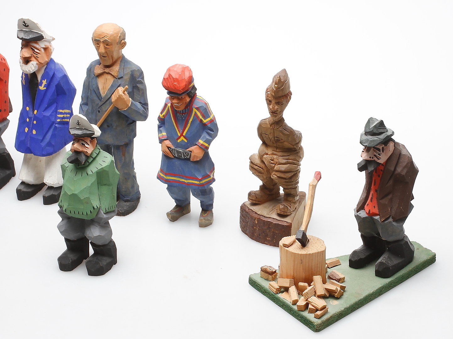 164629. TRÆSKULPTUR, 8 stk., 1900-tallet.