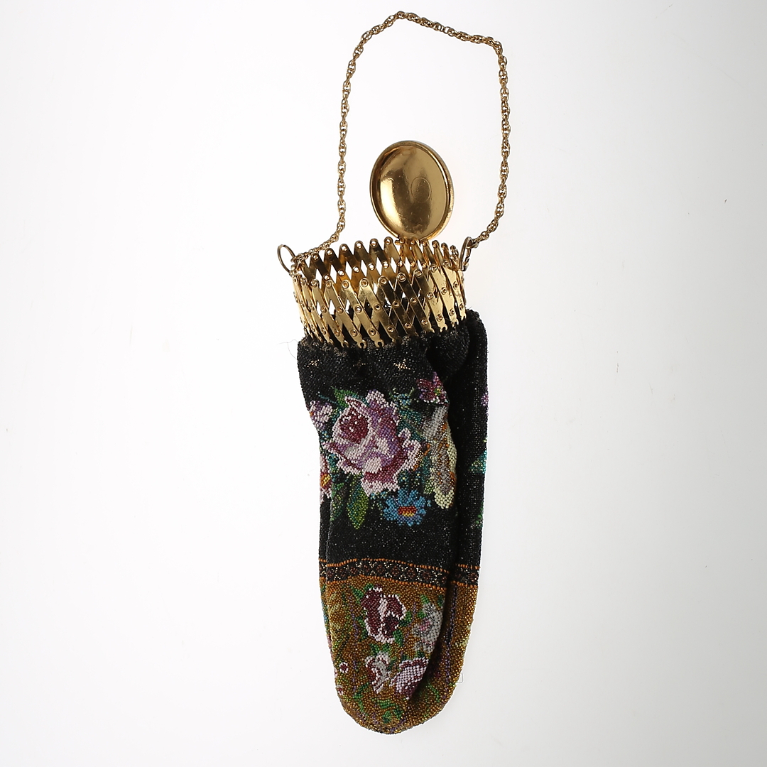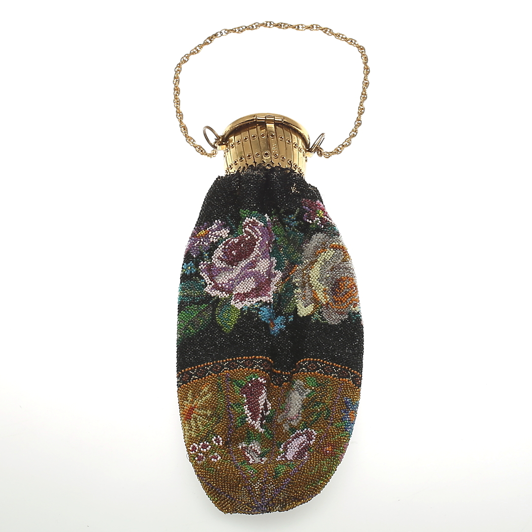 165063. AFTENTASKE, perlebroderi, 20. århundrede.