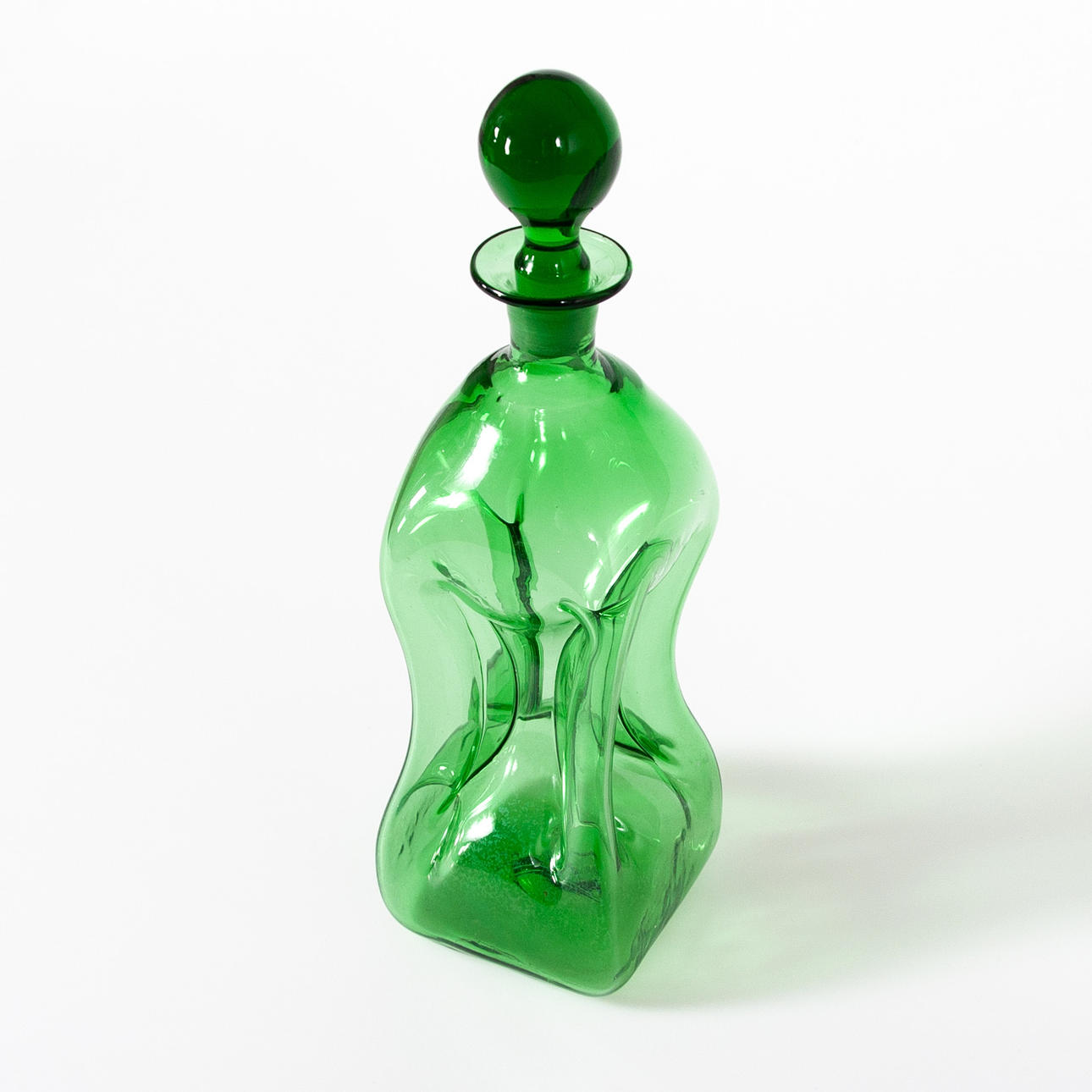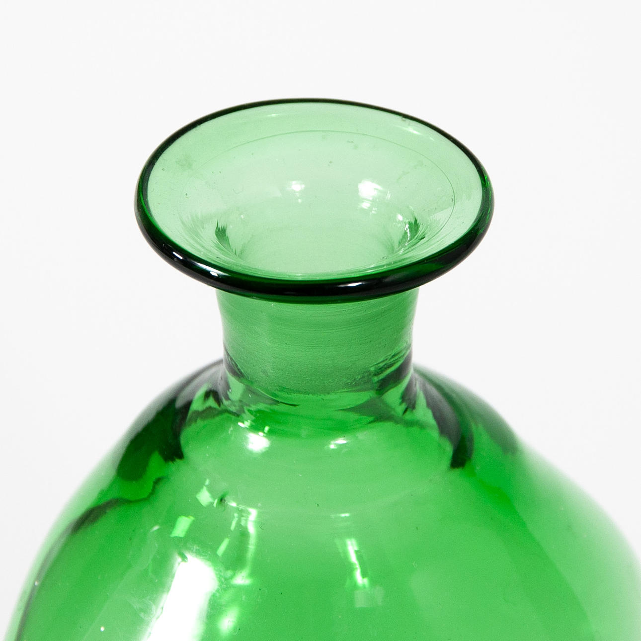 Grøn glasmasse. Højde inkl. prop ca 27,5 cm.
