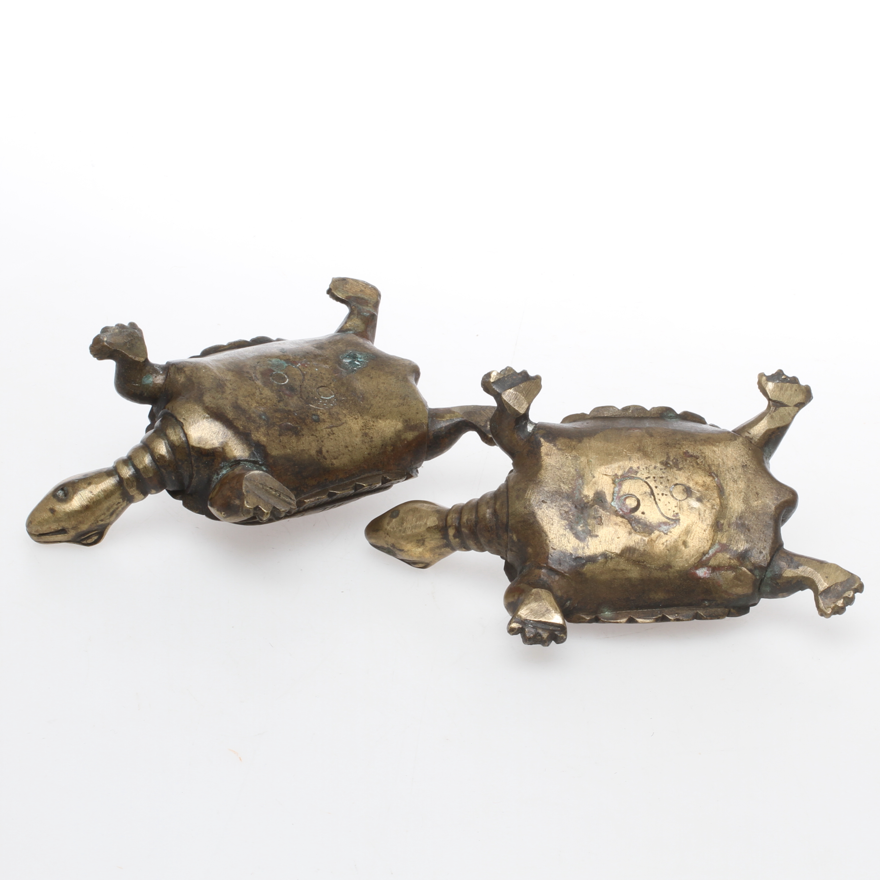 165420. FIGURER, 1 par, Skildpadder, bronze, Kina.