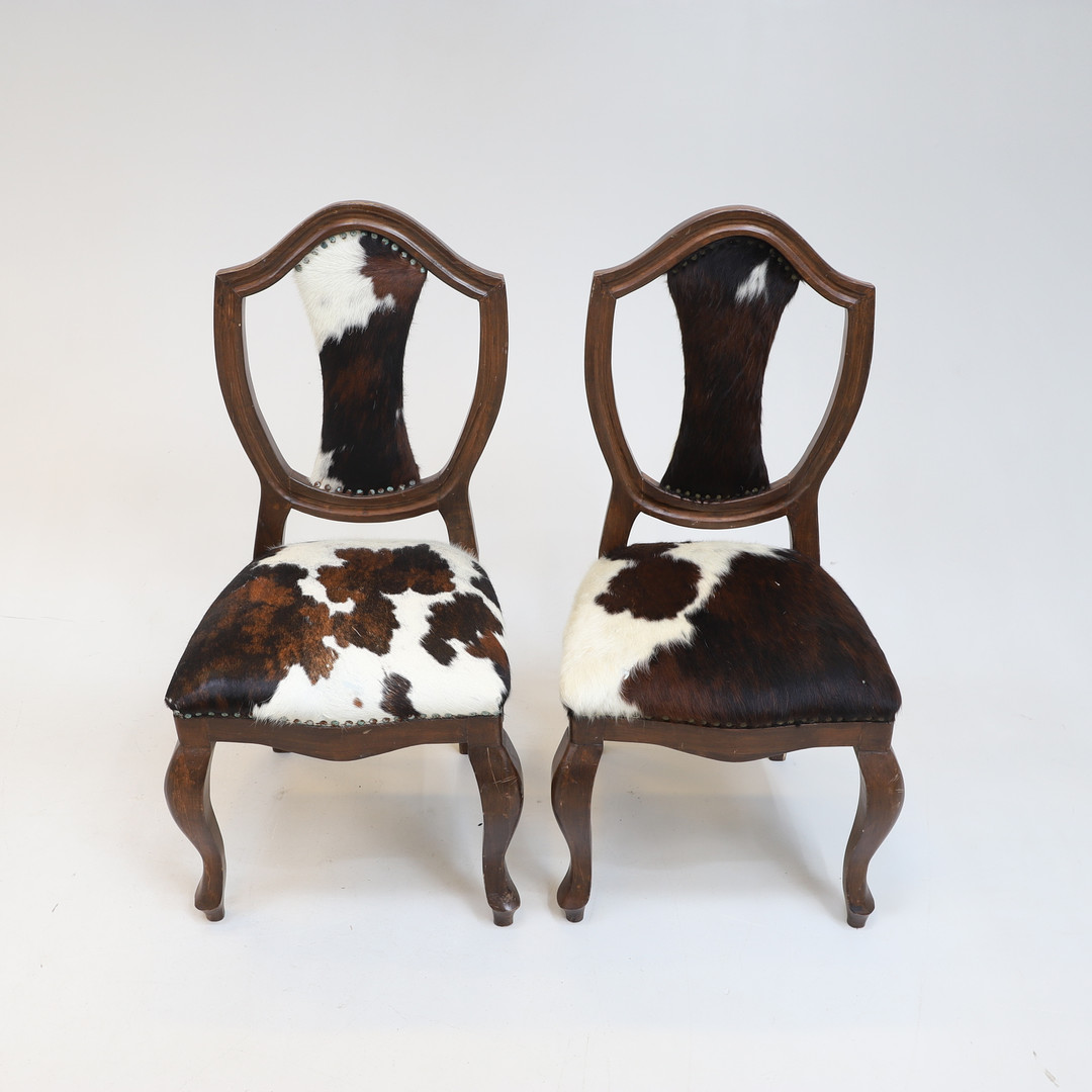 1656134. 2 STOLE, træ/koskind, 1900-tallet.