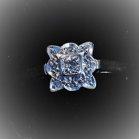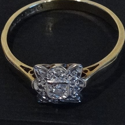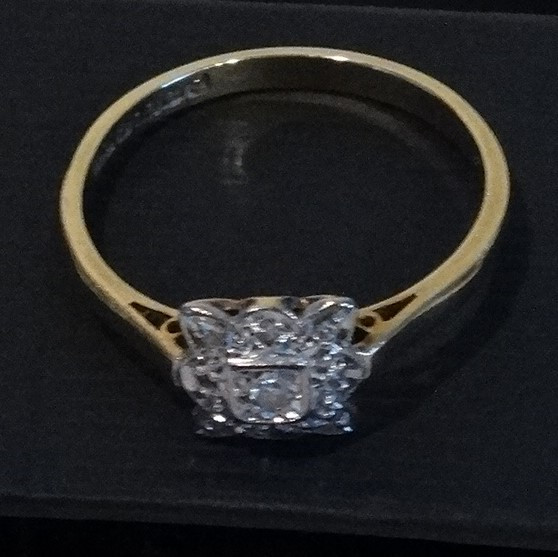 1662938. ART NOUVEAU RING, antik, guld 750 bicolor.