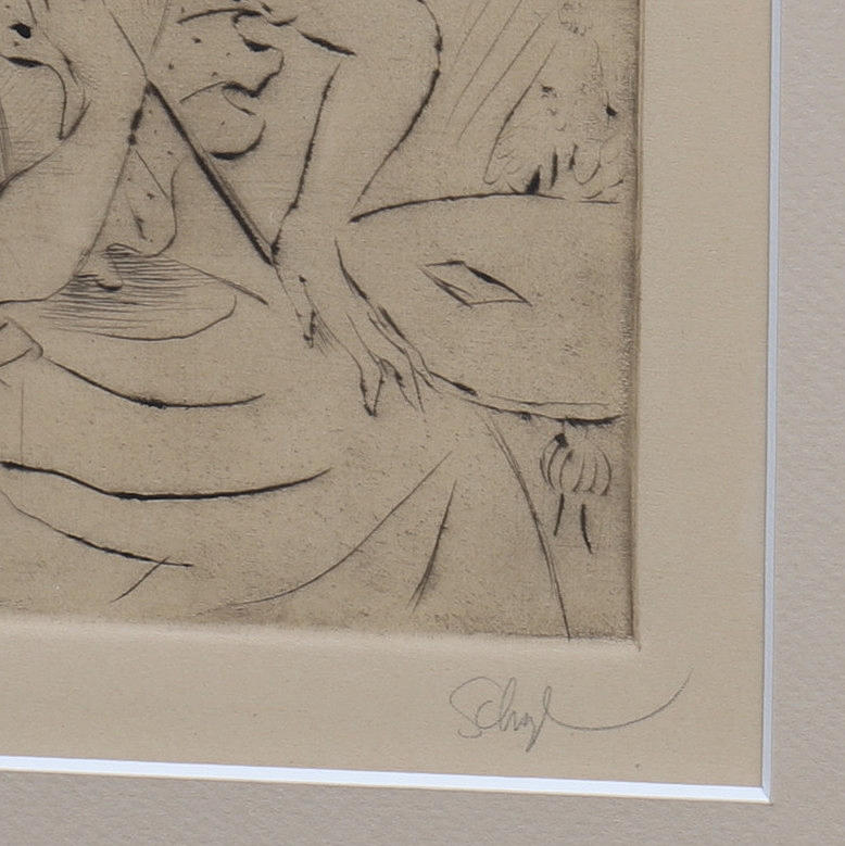 JULES SCHYL. KVINDE MED PARAPLY, radering.
