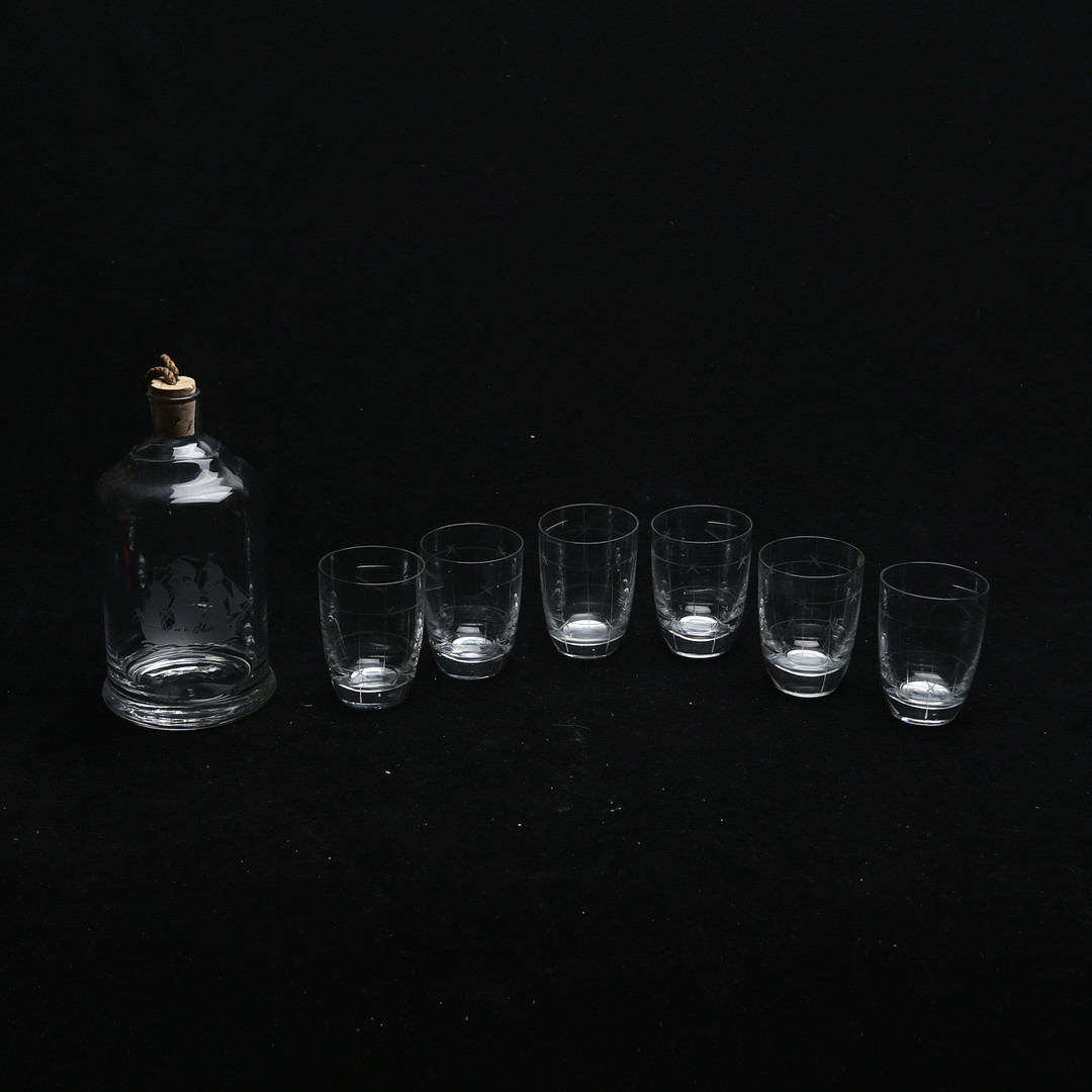 1666977. FLASKE, GLAS, 7 dele, 1900-tallet.