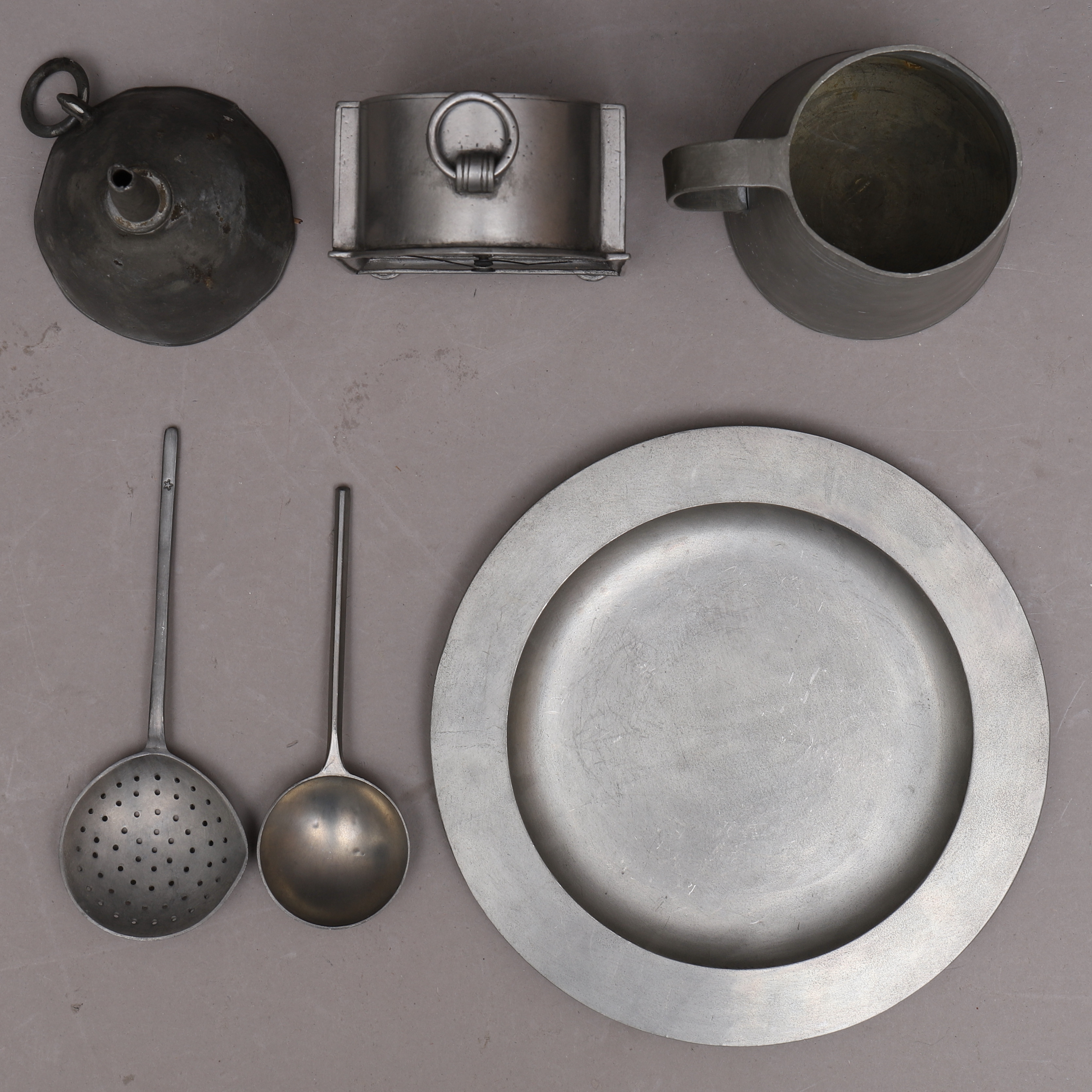 1667912. TIN OBJEKTER, 6 stk, 18-1900 tallet.