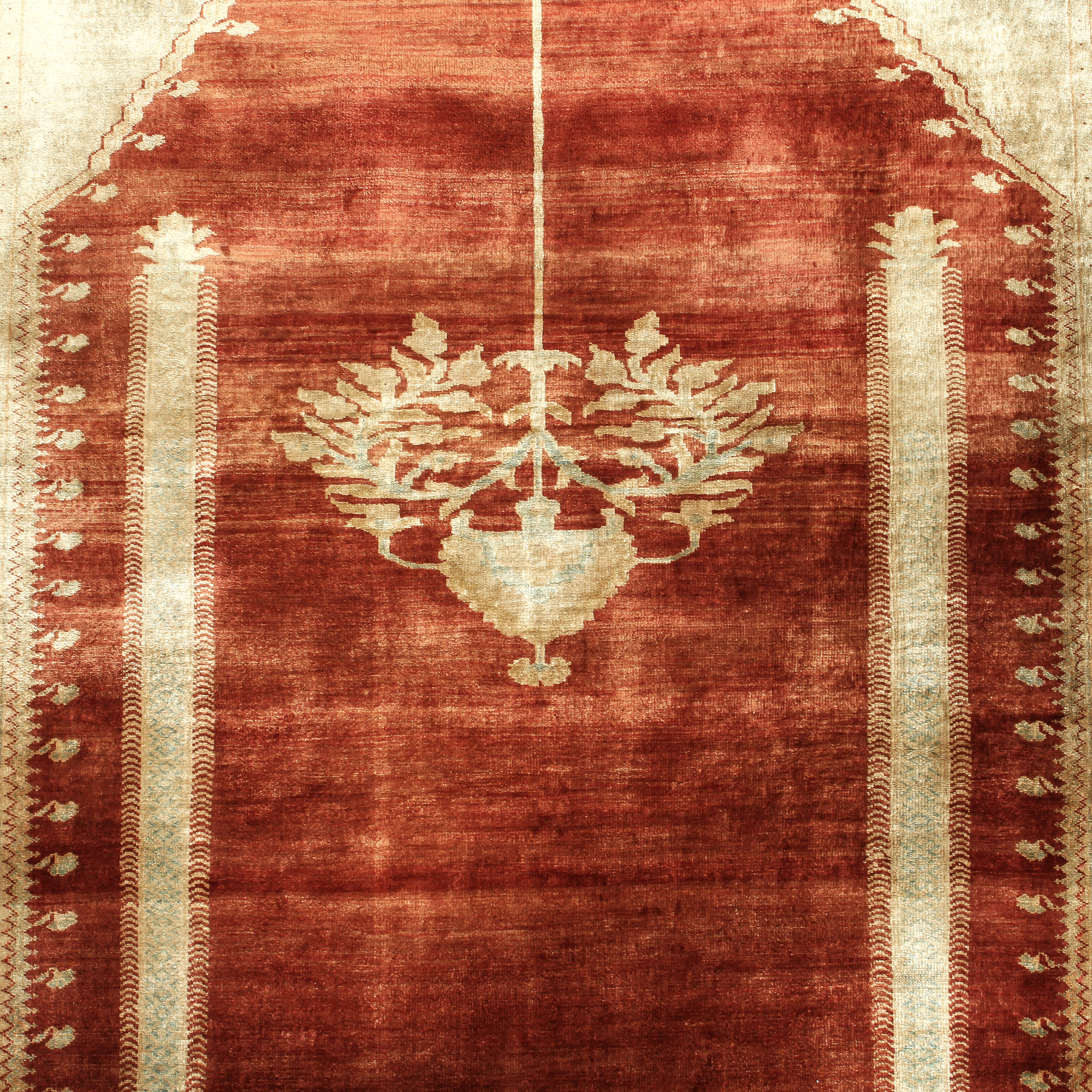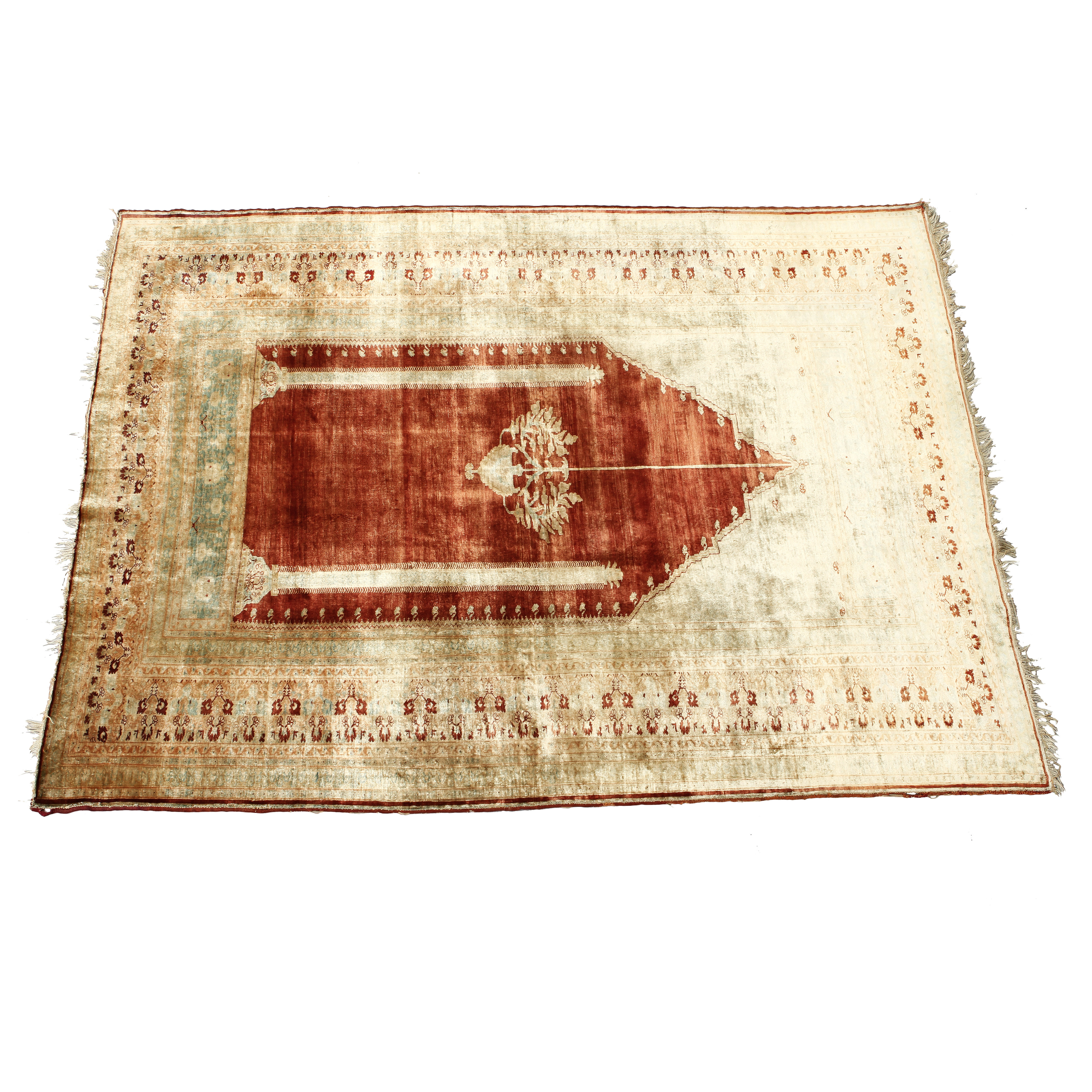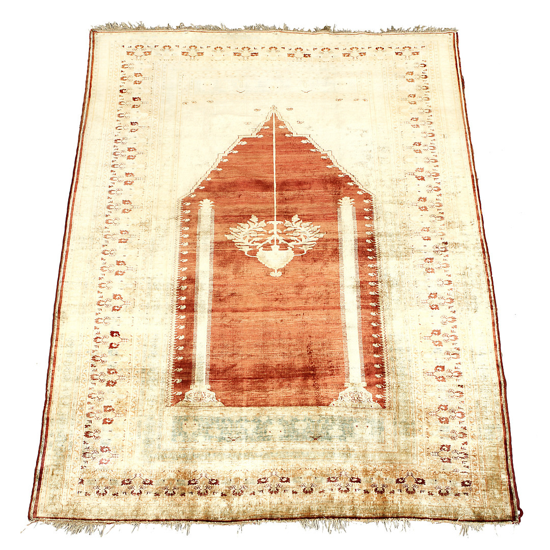 166828. BØNNETÆPPE, Ladik, silke, antik.