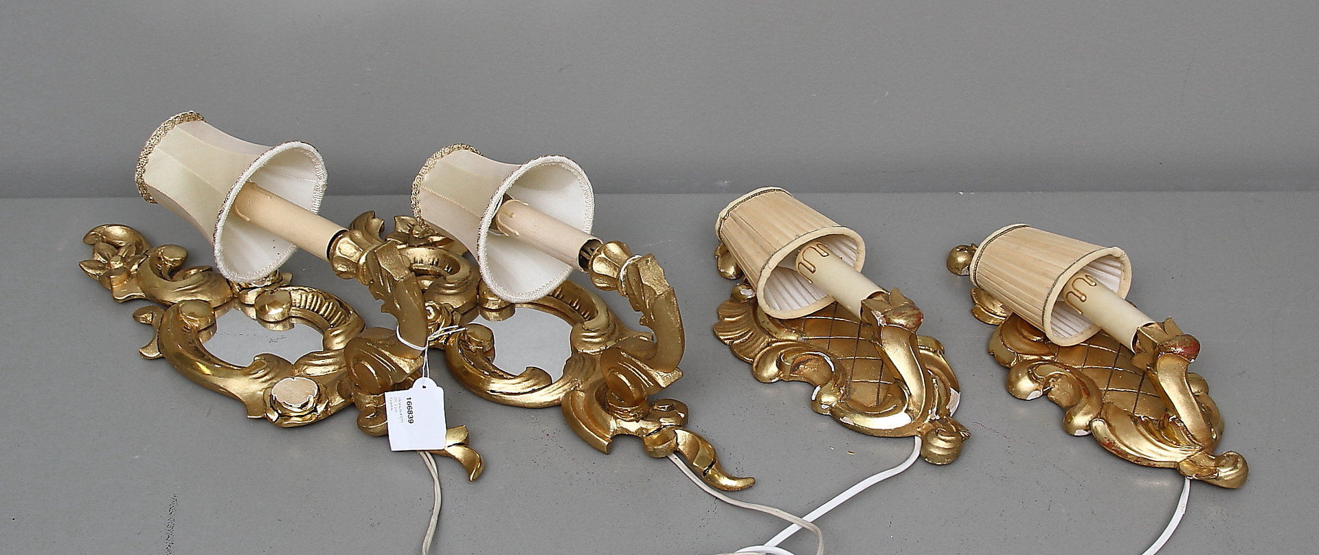 166839. VÆGLAMPER, 2 par, forgyldte.