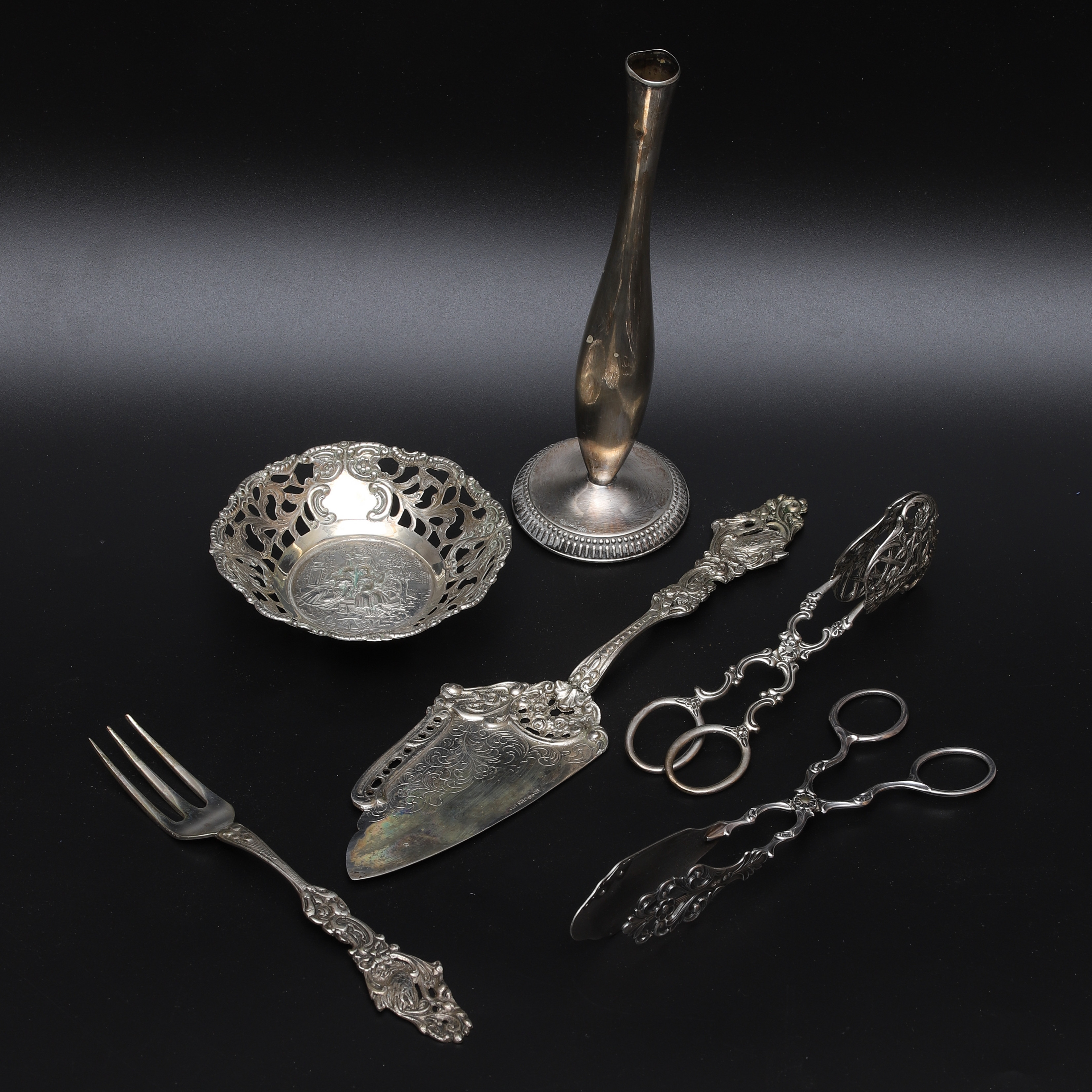 1670756. SØLVGENSTANDE, 6 dele, sølv, bl.a. kage skovl.