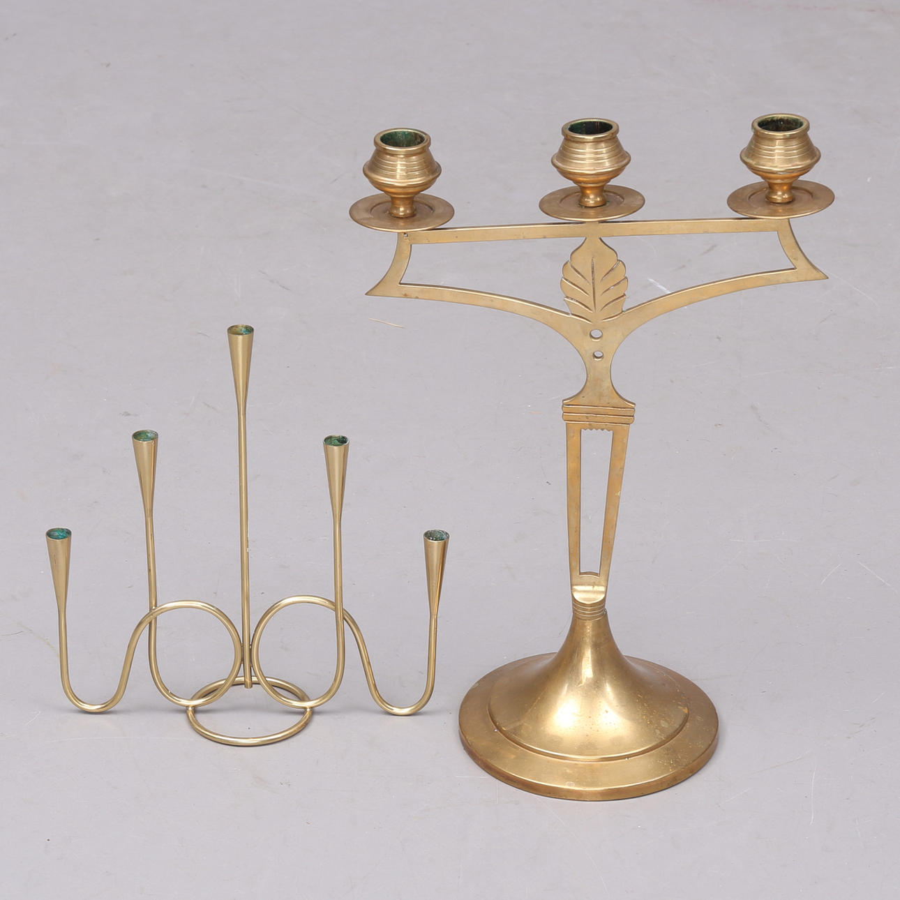 2 messing lysestager højde 26 og 40 cm.