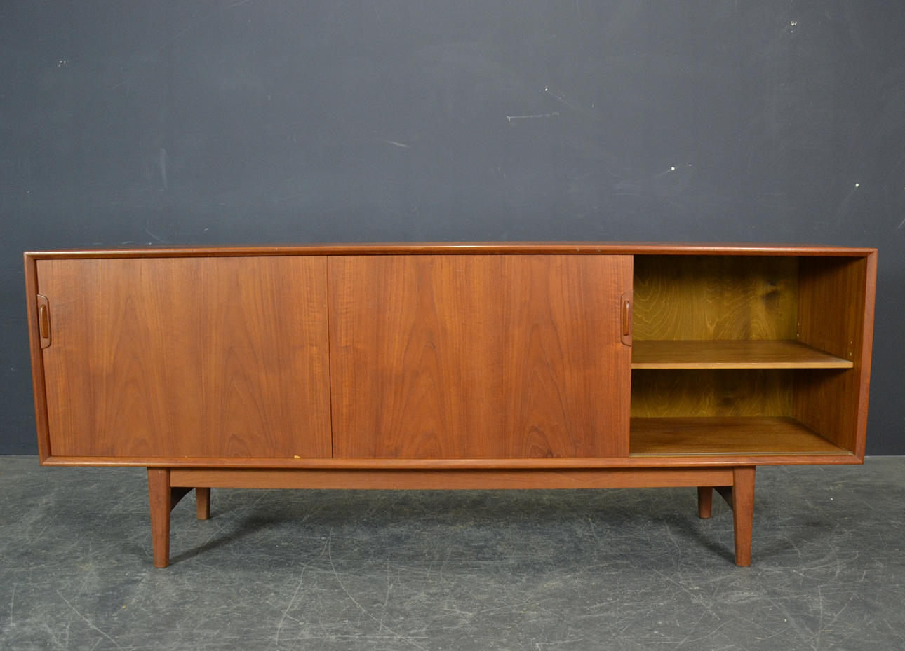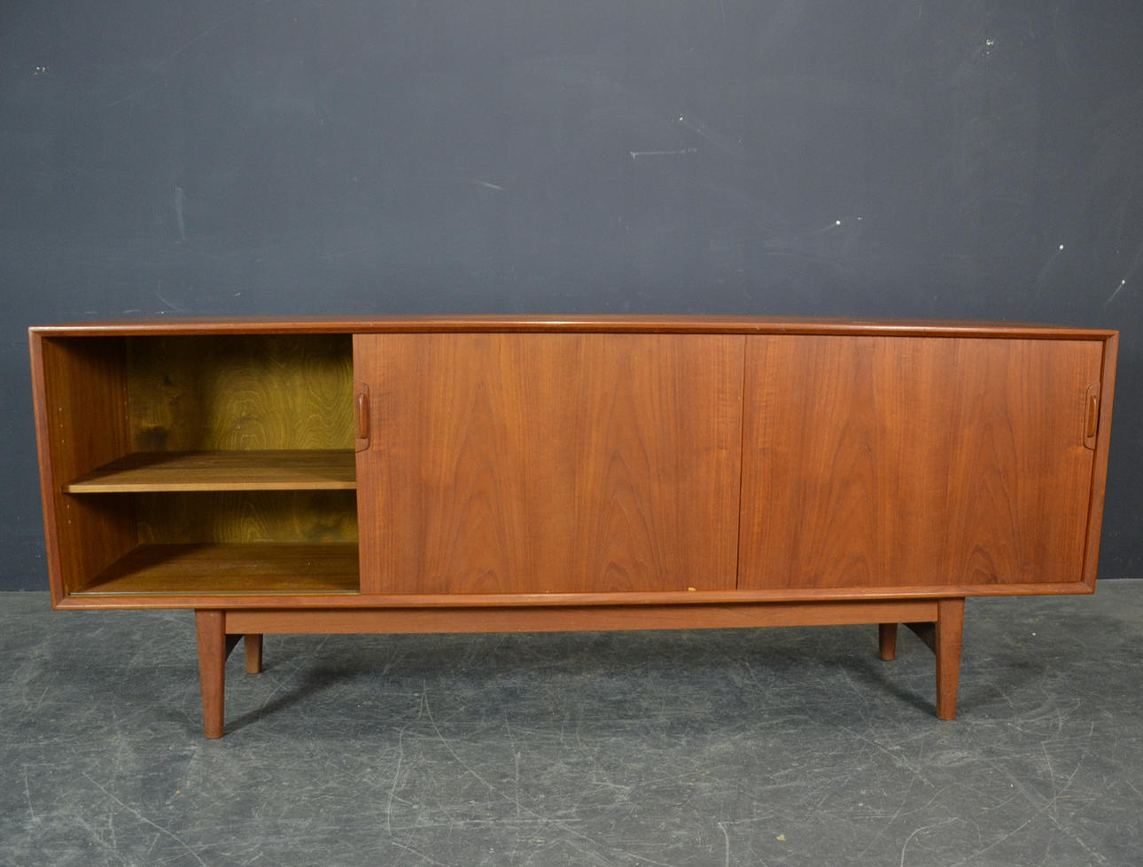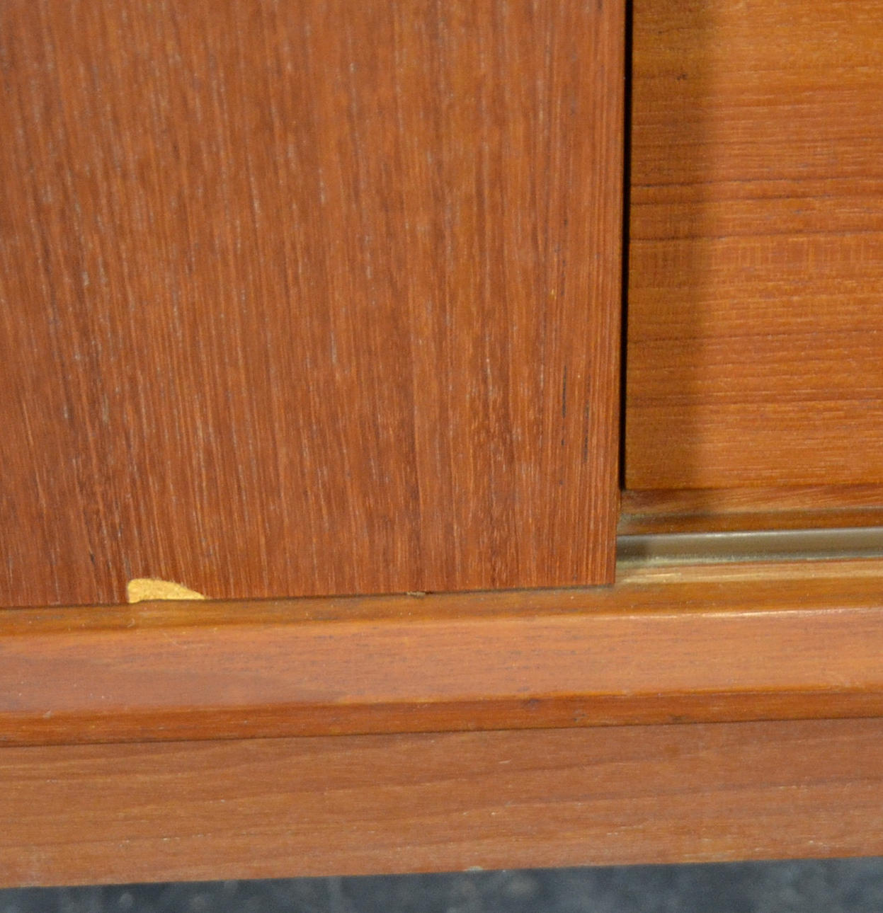 Mindre tegn på slid. Lille fejl i fineren på den ene skydedør.