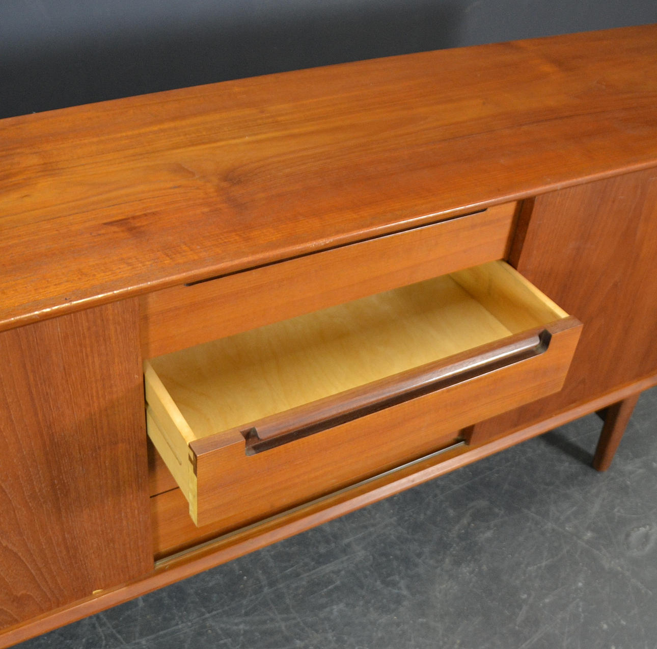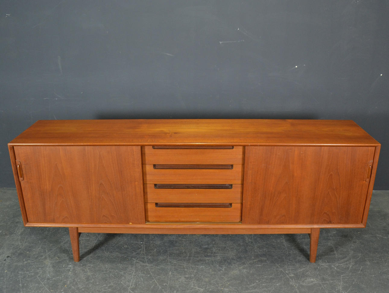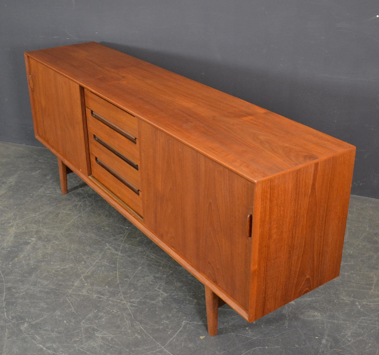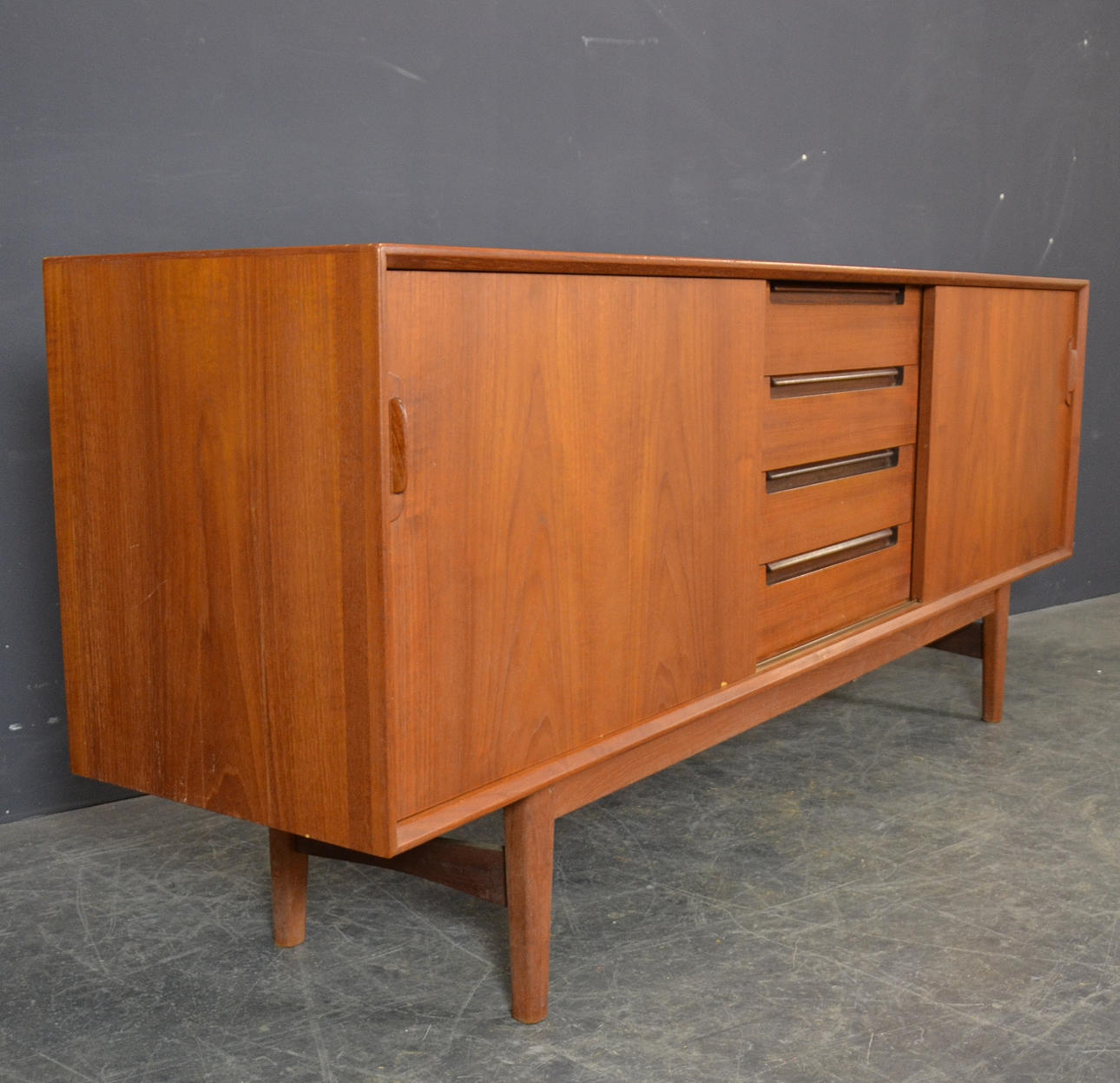 Mindre tegn på slid. Lille fejl i fineren på den ene skydedør.