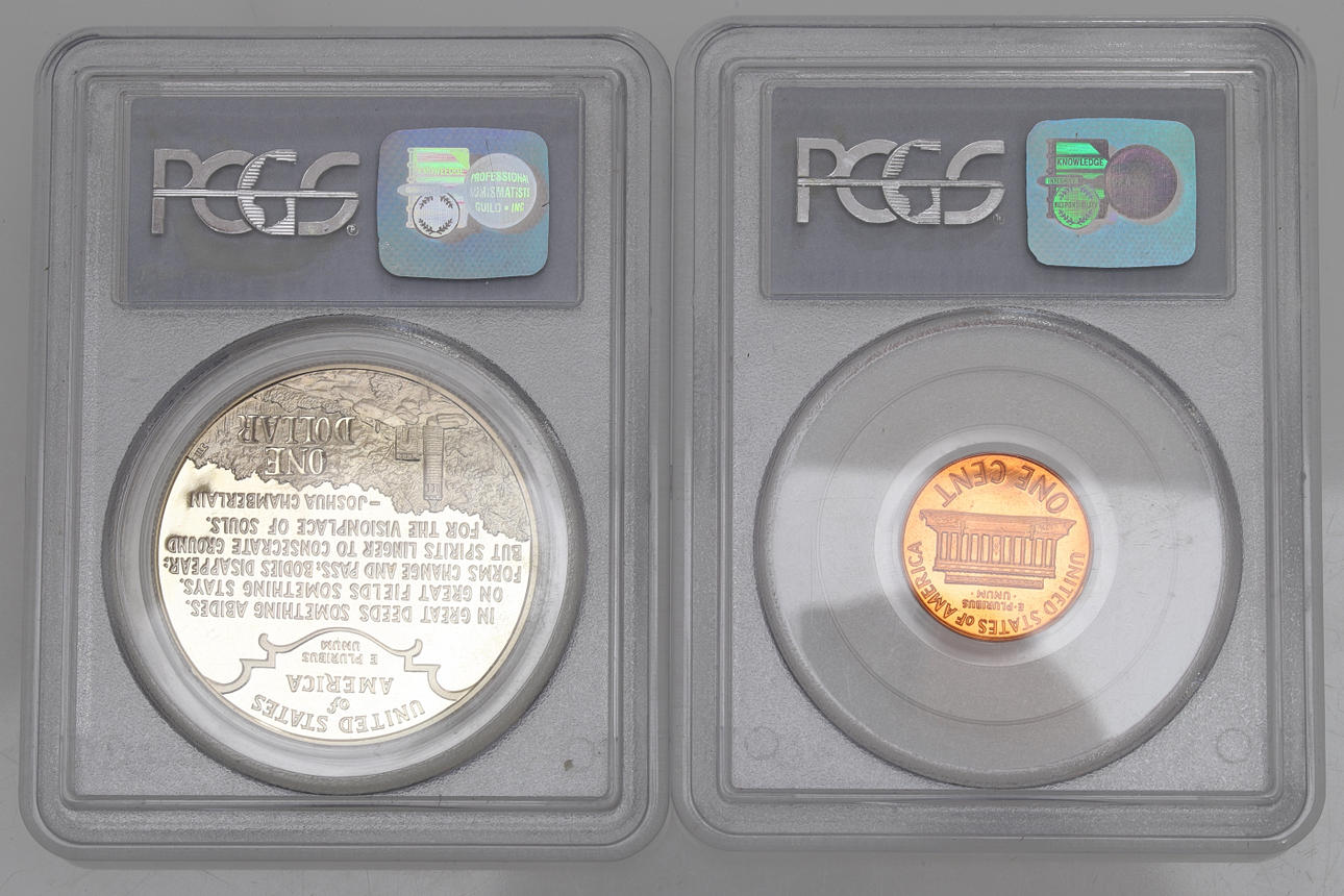 1684933. MØNT, 2 stk, en dollar & en cent, USA.