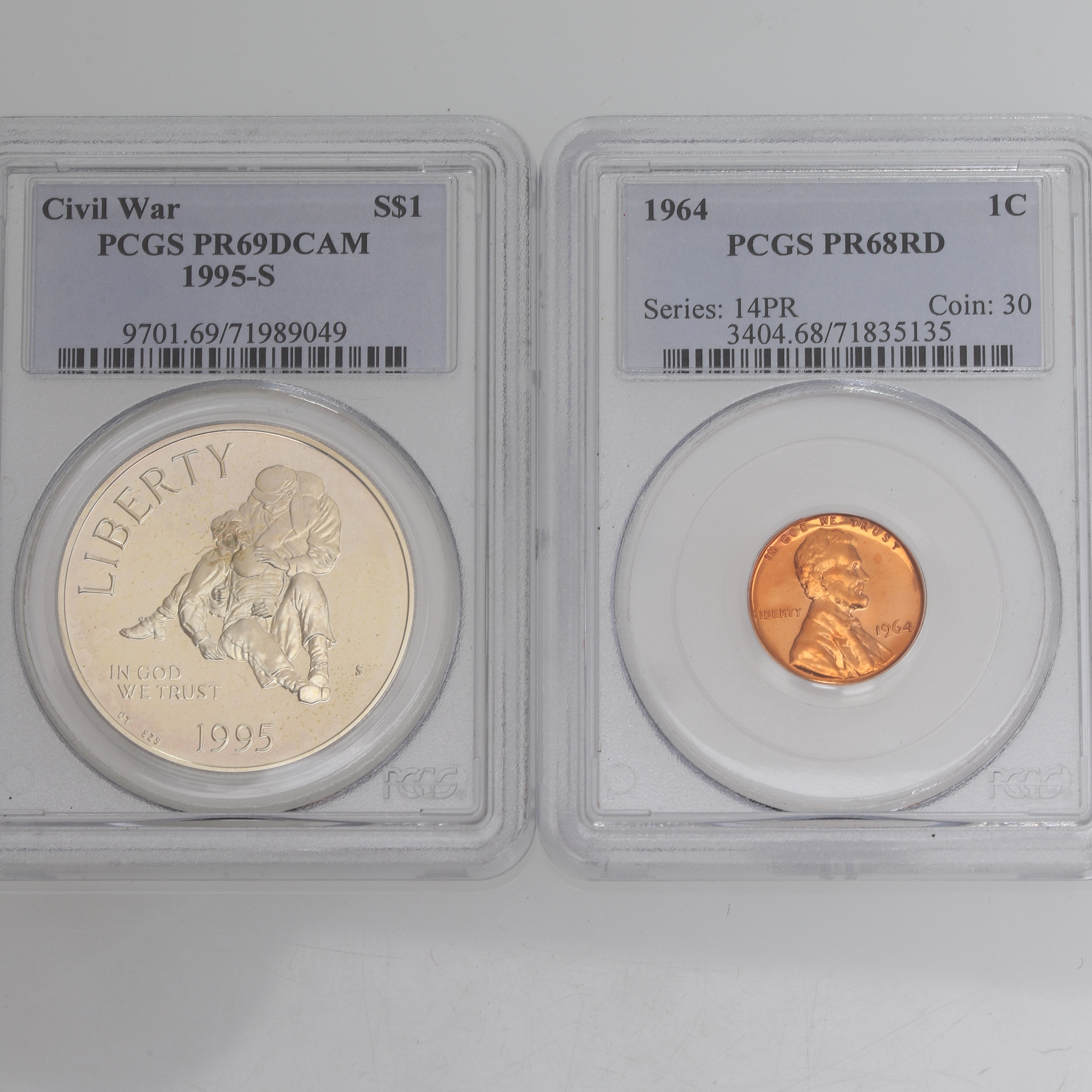 1684933. MØNT, 2 stk, en dollar & en cent, USA.