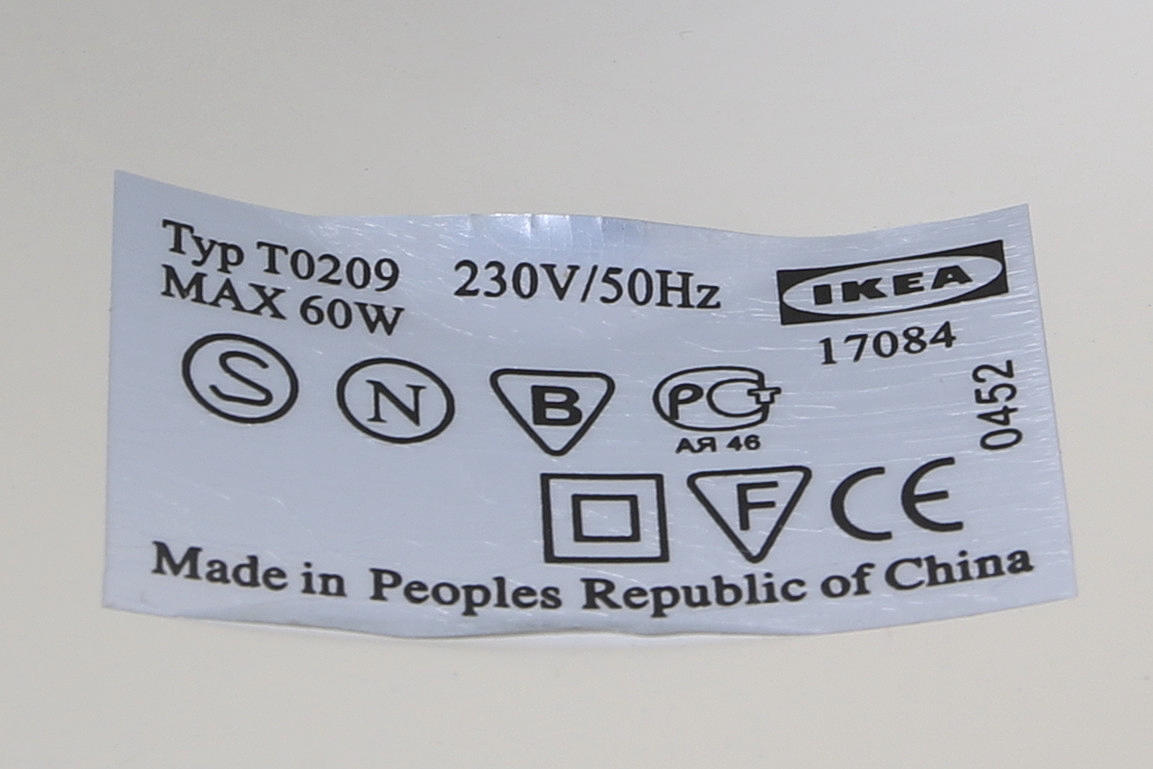 Diameter 47, højde 22 (ekskl. lampeledning og loftskål) cm.