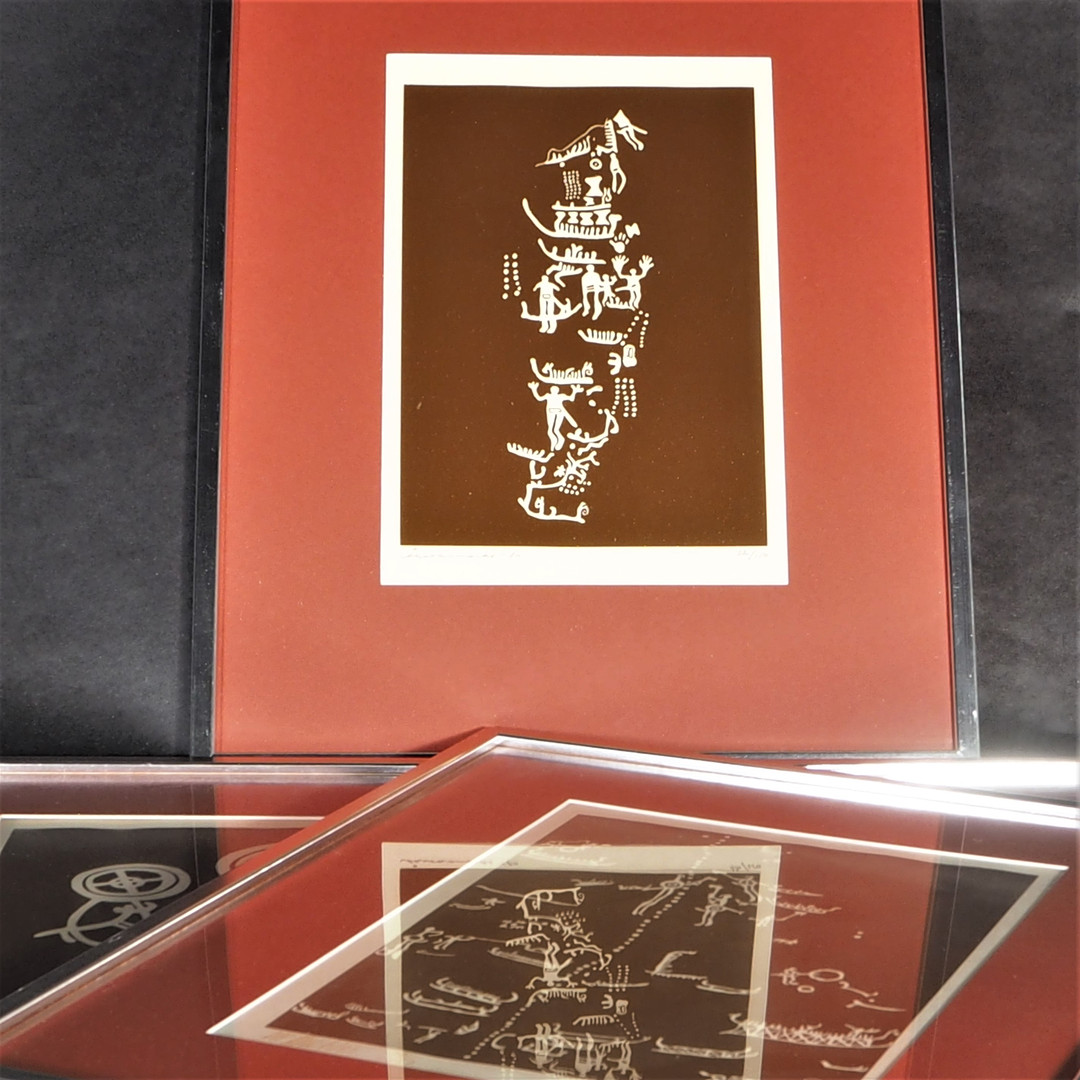 1689929. LITOGRAFIER, Ubekendt kunstner, 4 stk, helleristninger.