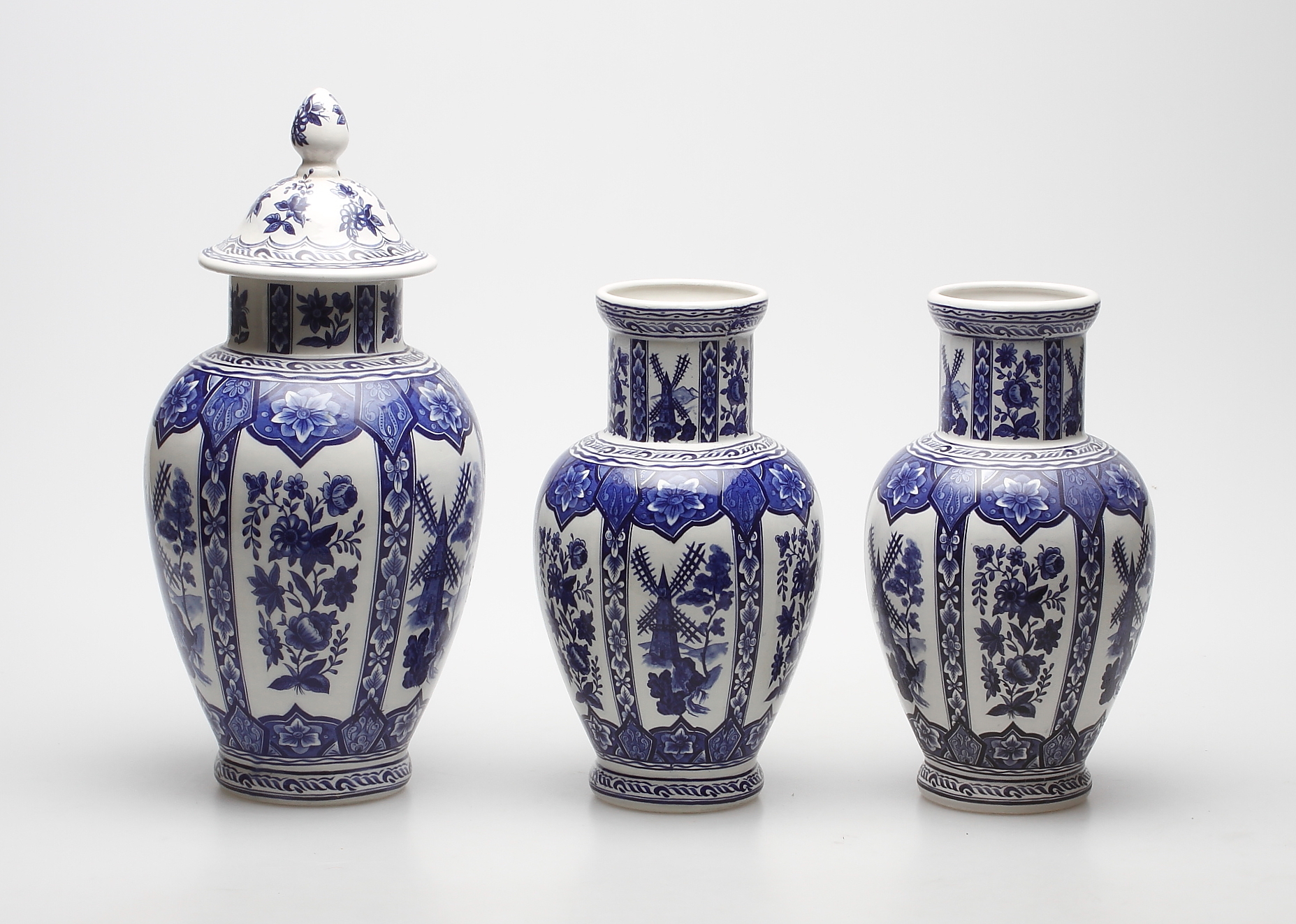 169173. LOCKURNA og VASER, et par, blå-hvid dekor, 20. århundrede.