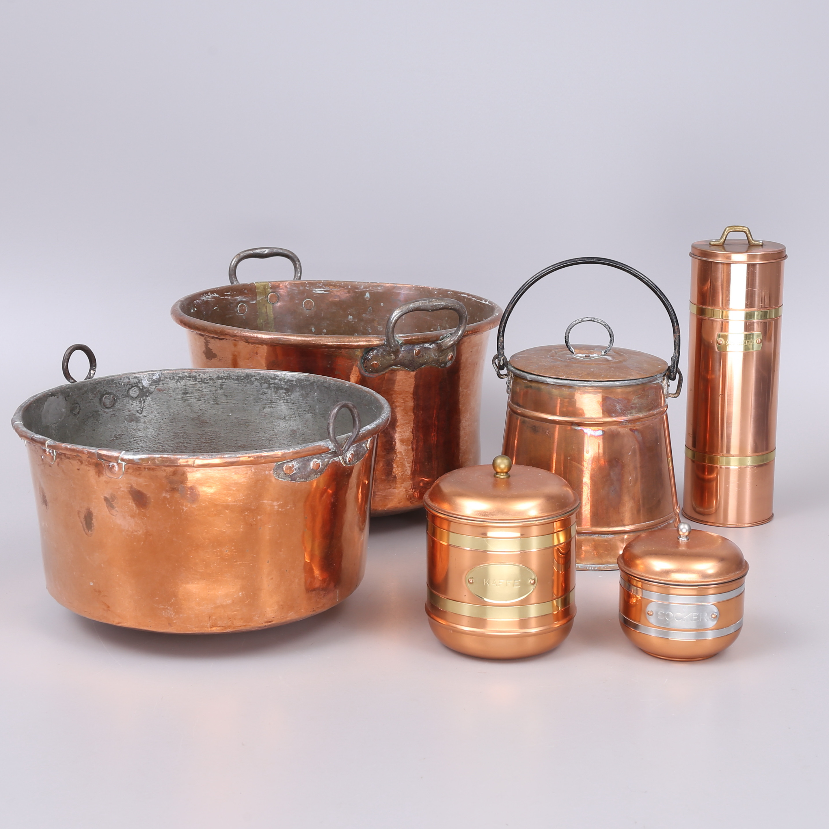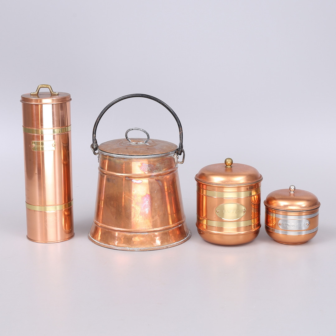 1693841. KOBBERGENSTANDE, 6 stk, 1800-/1900-tallet.