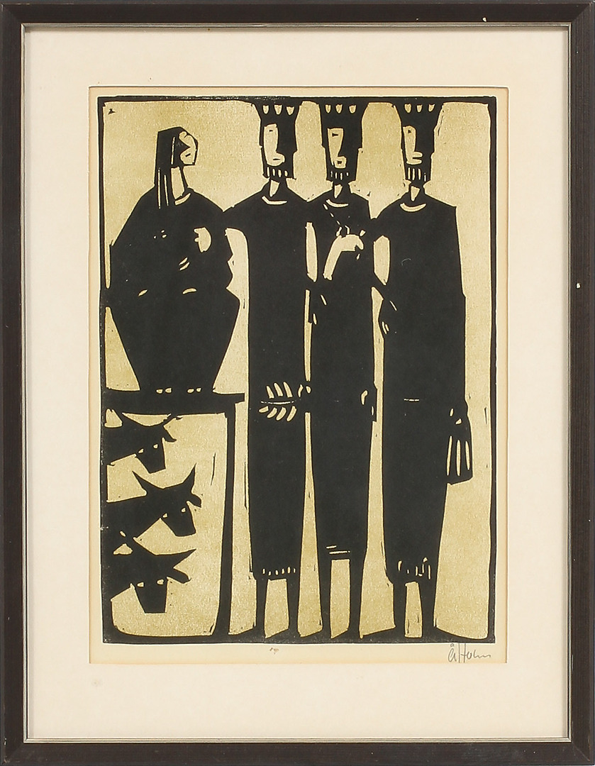 169459. ÅKE HOLM. Tre konger. Træsnit. Underskrevet.