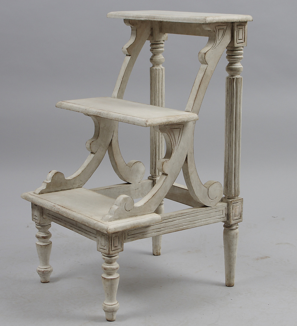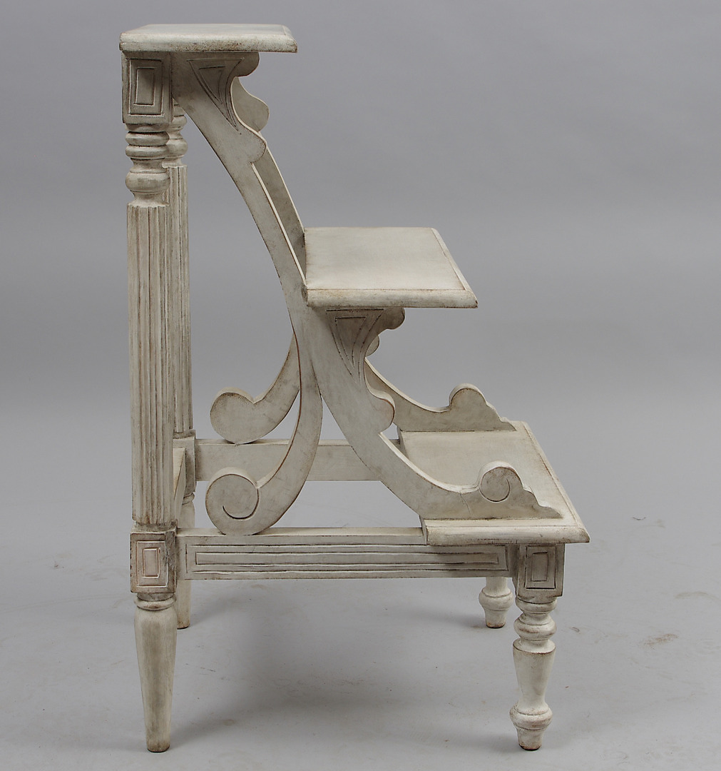 169997. BIBLIOTEKSTRAPPER, victoriansk stil, hvidmalet, moderne.