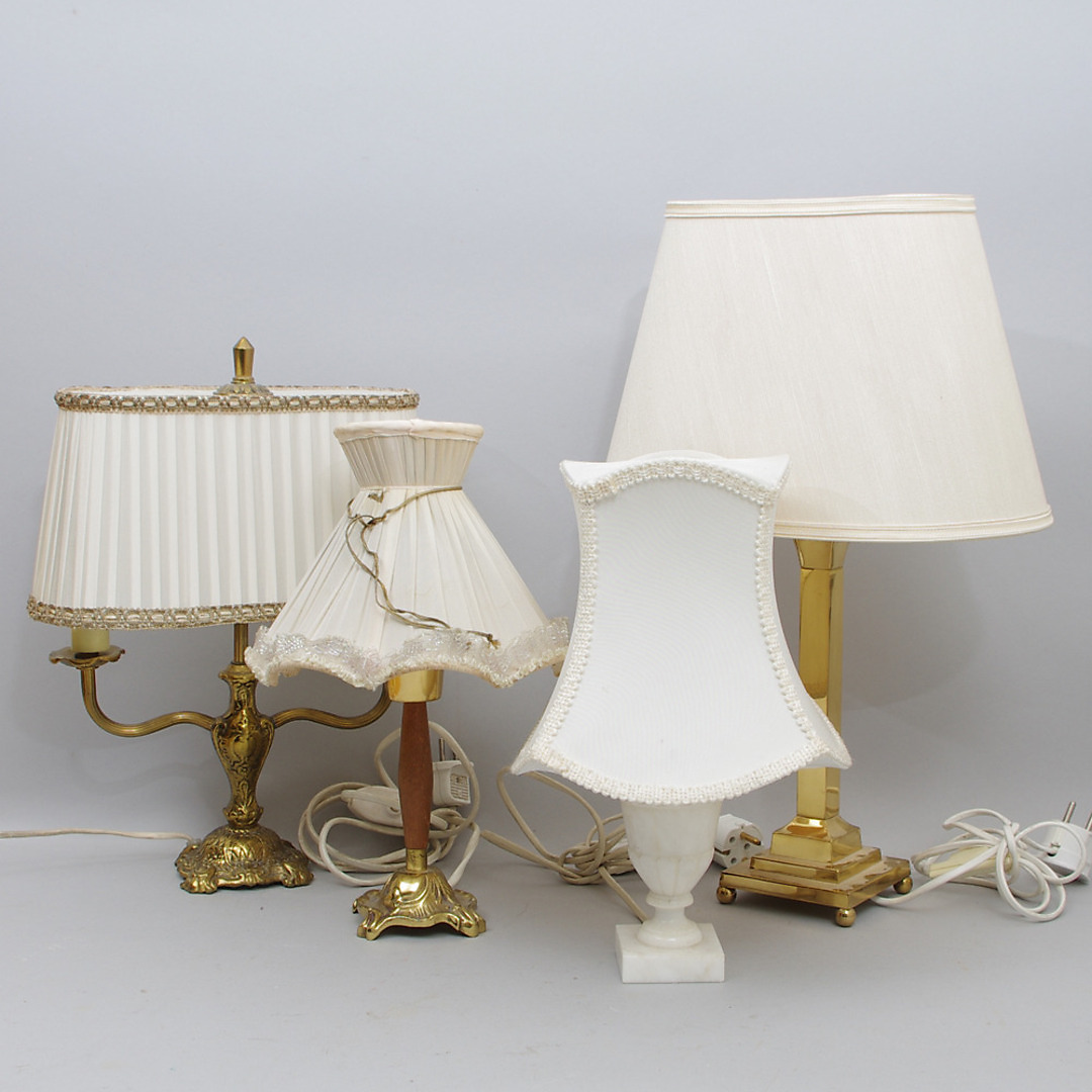 170185. BORDLAMPER, 4 stk., messing, træ, marmor.