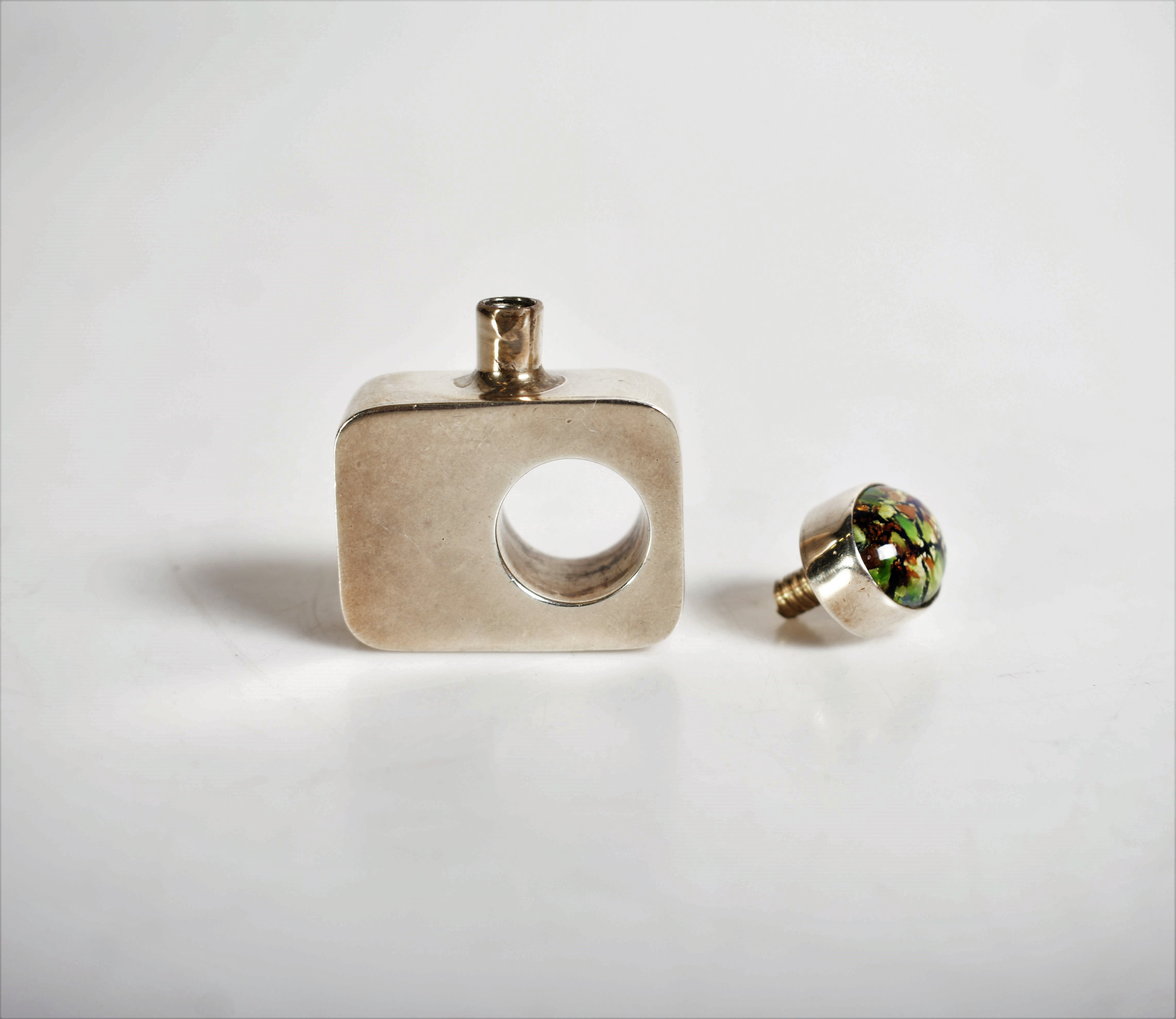 1701898. PARFUME flacon sølv, emalje.
