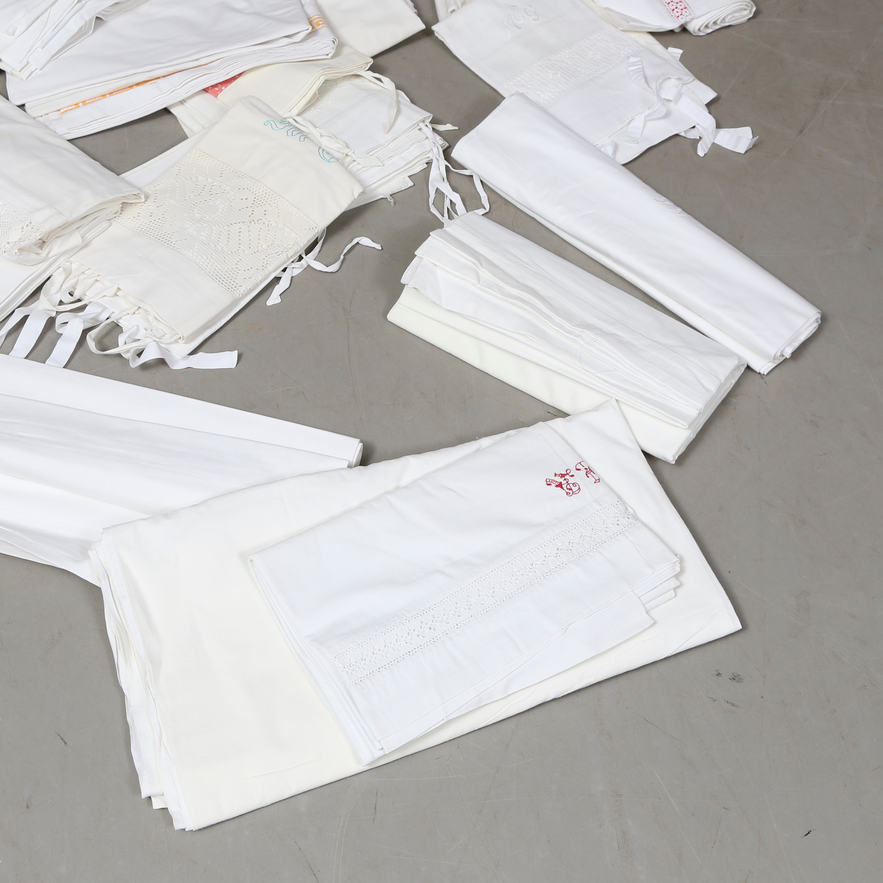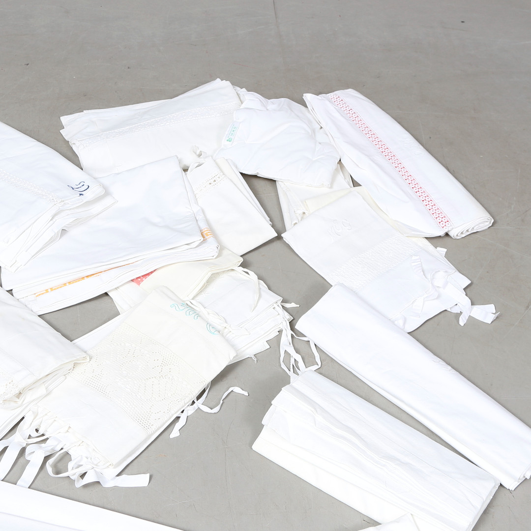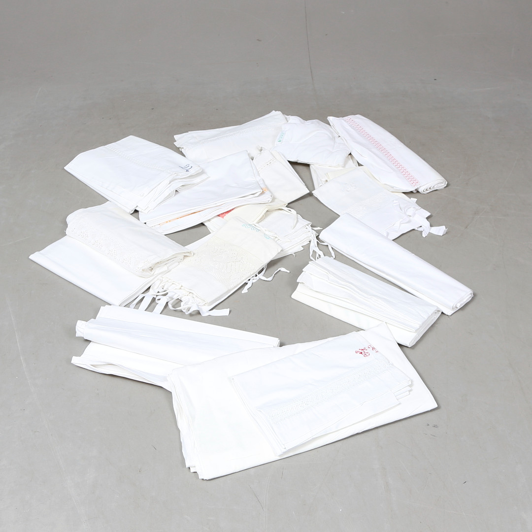 1706182. Sæt LINEN, pudebetræk og lagen, 1900-tallet.