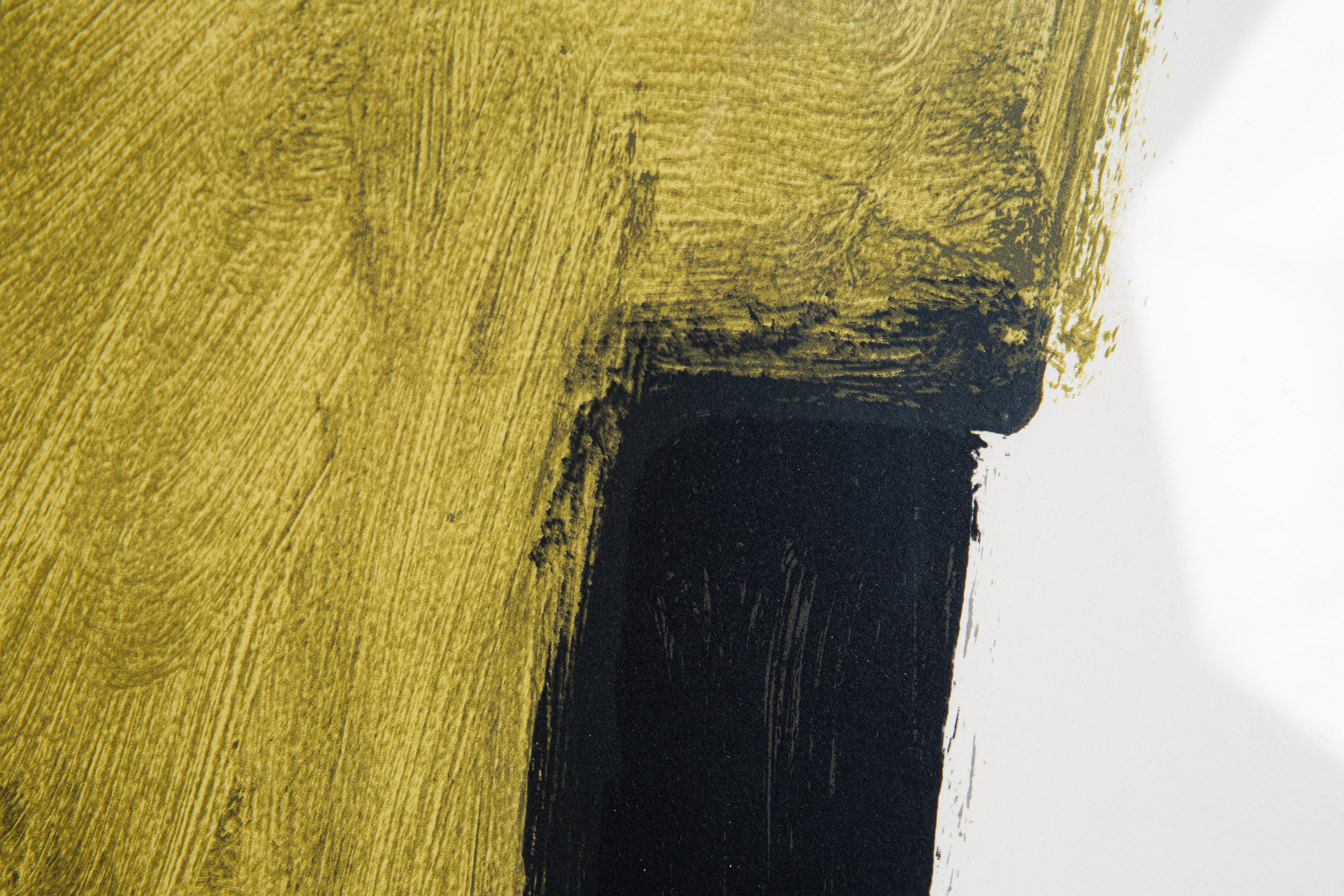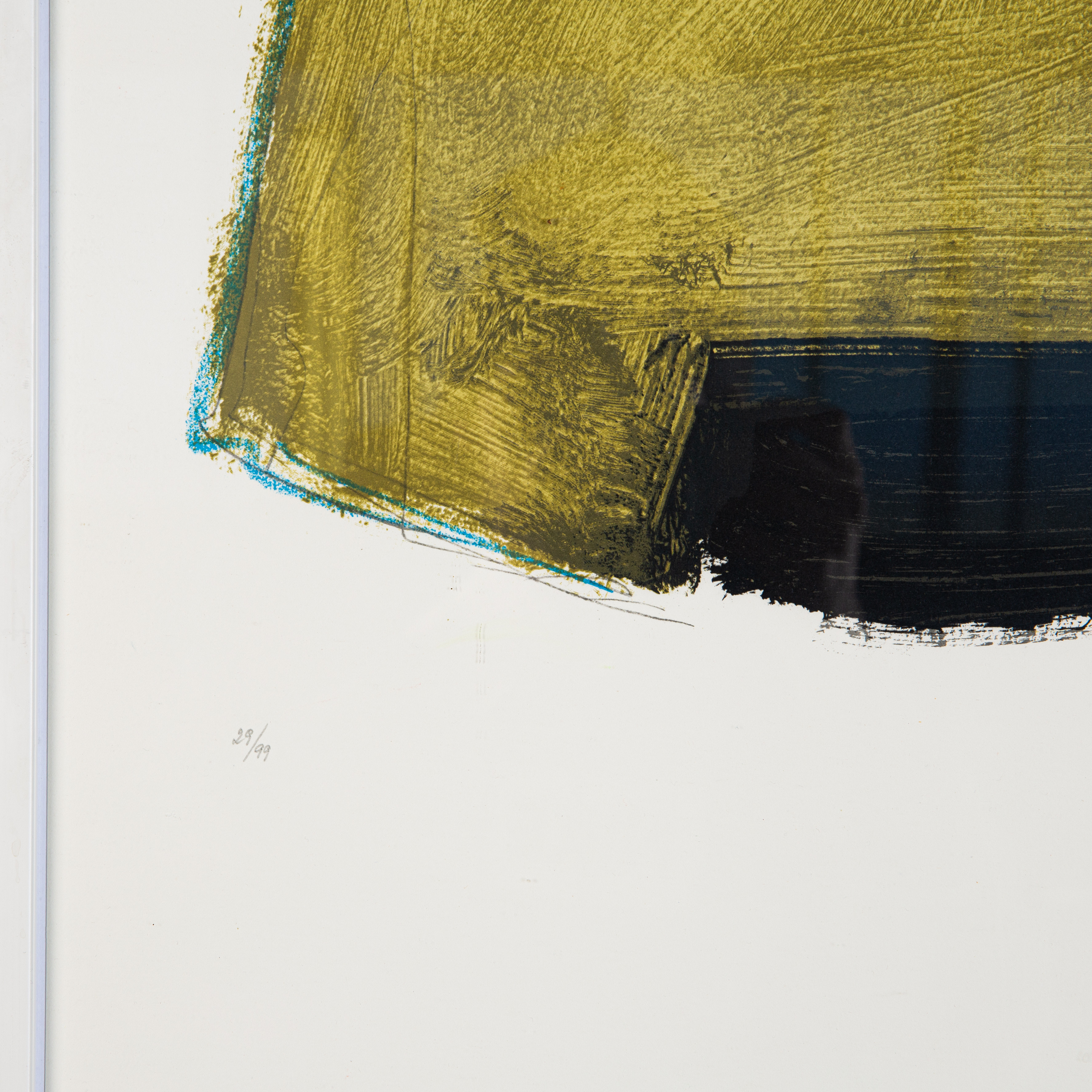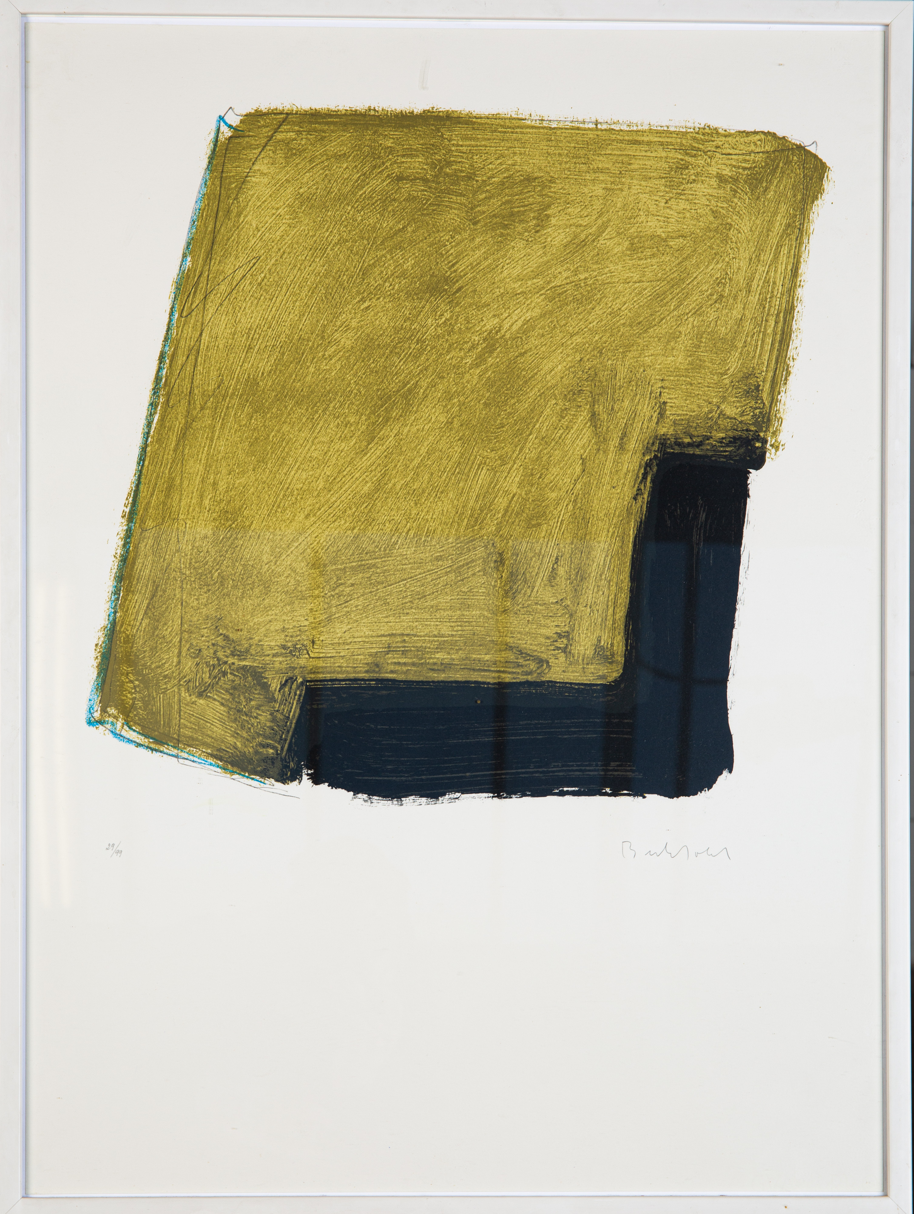 1710954. ERWIN BECHTOLD. Erwin Bechtold, farvelitografi, komposition i okker og sort.